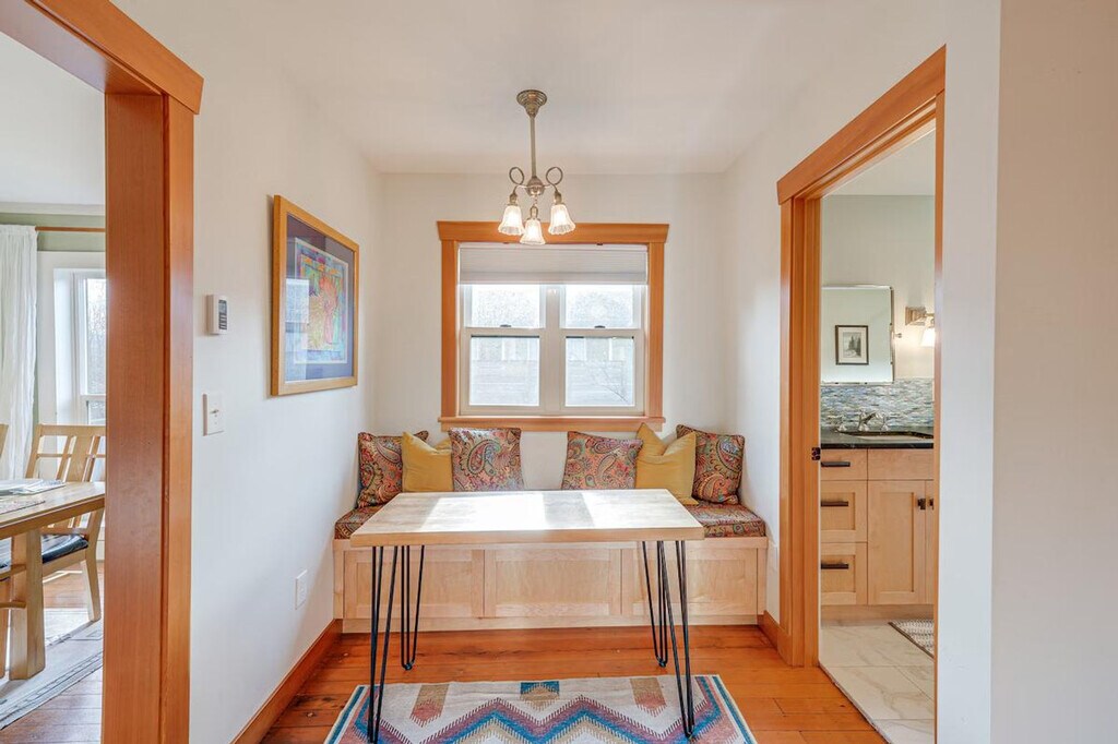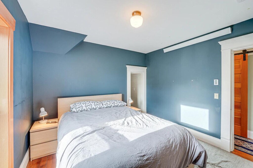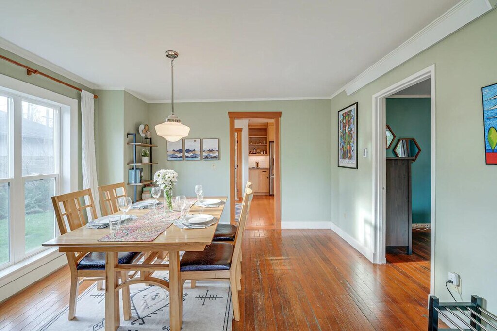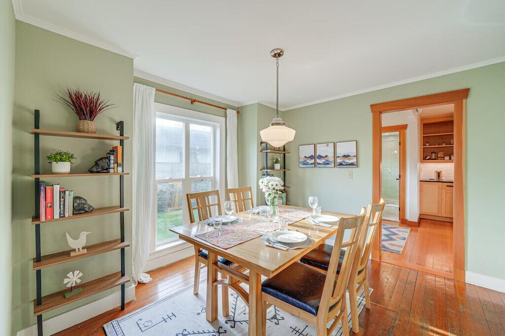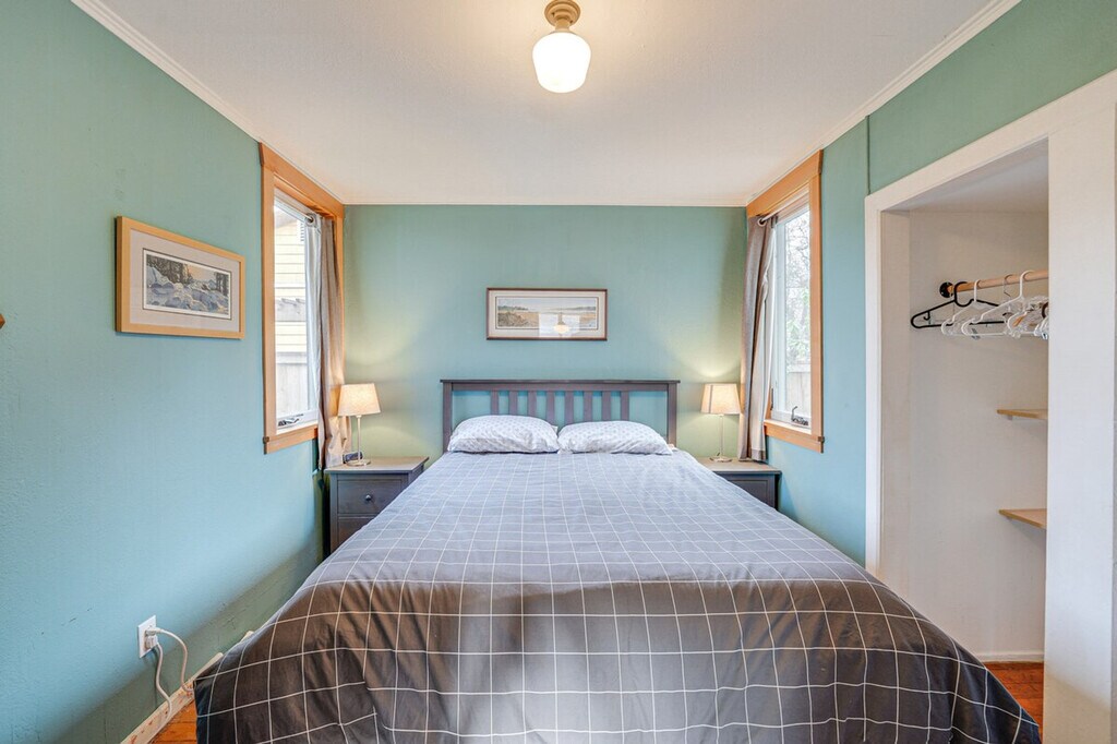 Feel at home in this colorful 3-bedroom, 2-bath home in Bellingham, WA. This 2-story home requires exterior steps to enter, but it offers a bedroom and full bathroom on the 1st floor. Additional interior stairs are required to access the other bedrooms on the 2nd floor. This home features a kitchen with a stove/oven, refrigerator, microwave, dishwasher, dishware/flatware, and cooking basics. Enjoy the flat-screen TV, wood-burning stove, sectional sofa, books, and board games. Other amenities include complimentary toiletries, towels/linens, a washer/dryer, laundry detergent, an iron/board, a hair dryer, free Wi-Fi, and central air conditioning/heat. Enjoy the wood-burning fire pit with seating and the fenced backyard. A gas grill is also available. Parking is available in the driveway for one vehicle, and free street parking is available. Take a short drive or walk to the Bellingham Farmers Market or stop by a nearby restaurant. Squalicum Beach and Whatcom Falls Park are also nearby. This home is located in a family-friendly and historic neighborhood and is near hospitals and Western Washington University. Smoking, pets, events, parties, and large gatherings are not allowed. Additional fees and taxes may apply. A photo ID may be required upon check-in. Includes 2 workstations. [SI]