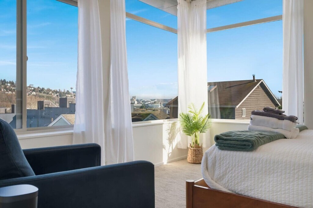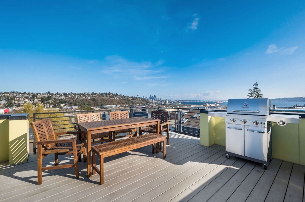 The advertised rate of $6,543/month is the lowest available price, based on a 1 month(s) and 2 day(s) stay with a move-in date of February 28, 2026. Rates vary depending on the duration of stay, season, and other parameters. For exact pricing and additional pricing components, please visit our website and enter your desired move-in and move-out dates. The rate is applicable when billed upfront; it can be higher if billed in multiple payments. Feel at home in this modern Interbay home, ideally located in a quiet, desirable Seattle neighborhood. This home features 3 bedrooms, 3.5 bathrooms, and 2,275 sq ft of living space, offering stunning views and thoughtful design. This home features bright, open living spaces, quality finishes, and a rooftop deck, making it ideal for both relaxing and entertaining. The full kitchen features a spacious island, perfect for cooking, gathering, and entertaining. The open living area includes large windows, a cozy fireplace, and fast Wi-Fi throughout the home. Two bedrooms include their own TVs, plus there is a large Smart TV in the living room. A washer and dryer are available for added convenience, and there is ample storage and closet space throughout. The rooftop deck showcases panoramic views of Mt. Rainier and the Space Needle, complete with comfortable seating, a firepit, and a BBQ grill. Located in Seattle’s Interbay/Magnolia neighborhood, this modern home sits in a quiet, residential neighborhood with easy access to local cafés, shops, and parks. It is just minutes from Magnolia Village’s dining and retail options, and close to waterfront green spaces and trails along Smith Cove and Discovery Park for outdoor enjoyment. Enjoy quick connections to Queen Anne, downtown Seattle, and nearby attractions, making it a wonderful base for exploring the best of the city. This is not a pet-friendly home, and there is a $500 fine for unauthorized pets. Parties and events are strictly prohibited, and quiet hours are between 10pm and 8am. Smoking or vaping of any kind is not allowed anywhere on the property, including outdoor areas. Digital piracy is prohibited, and shoes are not allowed in the home. There is a $500 fine per violation. Registration Number: STR-OPLI-22-001374 [SI]