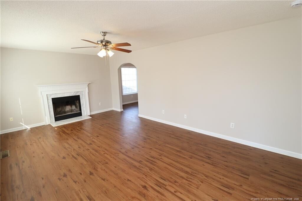 This inviting, ranch-style home is ready for immediate occupancy. Welcome to 2324 Maybrook drive, tucked-away in a convenient southeast Raleigh neighborhood and just minutes away from I-440, downtown Raleigh, local, parks, schools and much more! Upon arrival, you're greeted by a private driveway, a fenced-in backyard, and an inviting, covered front porch. Once inside, you'll notice the fresh paint as well as the gorgeous luxury plank flooring that flows throughout the interior; not a stitch of carpeting to be found! The foyer includes an arched entryway as well as a drop-down space with a floating shelf; leave your everyday items and stress at the door. The interior is anchored around a sprawling family room boasting a cozy fireplace, a ceiling fan, triple picture windows, and a design that makes furniture placement a breeze. Through another arched entry, you'll next enter a combined dining area and kitchen. The dining area is perfectly-proportioned and includes a charming bay window as well as direct access to the fenced in yard and back deck. The kitchen boasts copious amounts of cabinetry accentuated with stone-look countertops, a custom-tiled backsplash, and a dual bowl stainless-steel sink beneath a picture window. The kitchen features a dishwasher, a smooth-top, double drawer oven, and a refrigerator with an ice/water dispenser in the door. Tucked away on the other side of the home are the three bedrooms and two bathrooms, as well as a conveniently located laundry center. The primary bedroom offers a ceiling fan, a double picture window that provides natural light, a spacious closet and en-suite bathroom with an elevated, dual sink vanity, tiled flooring, and a shower/tub. Bedrooms #2 and #3 are both generously proportioned with ample closet space and easy access to a full hall bathroom with a vanity and tub/shower. Before wrapping-up your tour, be sure to visit the amazing backyard with an elevated deck overlooking a private, fenced-in yard with multiple garden beds, a shade tree and a storage closet.