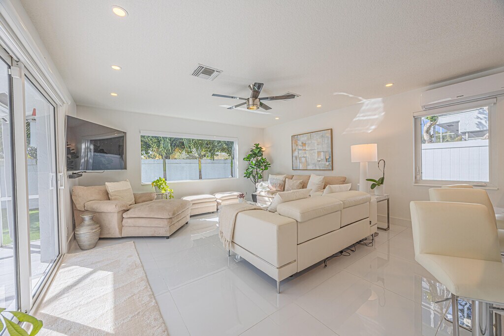Welcome to this perfectly renovated,modern fully furnished home in a highly sought after gated community. Light,bright and beautifully finished,this open and airy home is designed for both comfort and style. The home offers impeccable finishes with seamless indoor-outdoor living. The chef's kitchen is truly an entertainer's delight,complete with sleek black granite countertops,high end GE appliances,and countertop seating. Hosting gatherings or enjoying casual meals. The living spaces flow effortlessly to a screened-in patio. Outside enjoy the fenced in,turfed backyard. The pool and tennis court are located steps away. Minutes from 95,the beach,upscale shopping and dining. Enjoy modern comfort,privacy,and prime location all in one exceptional rental opportunity. MLS ID R11162658