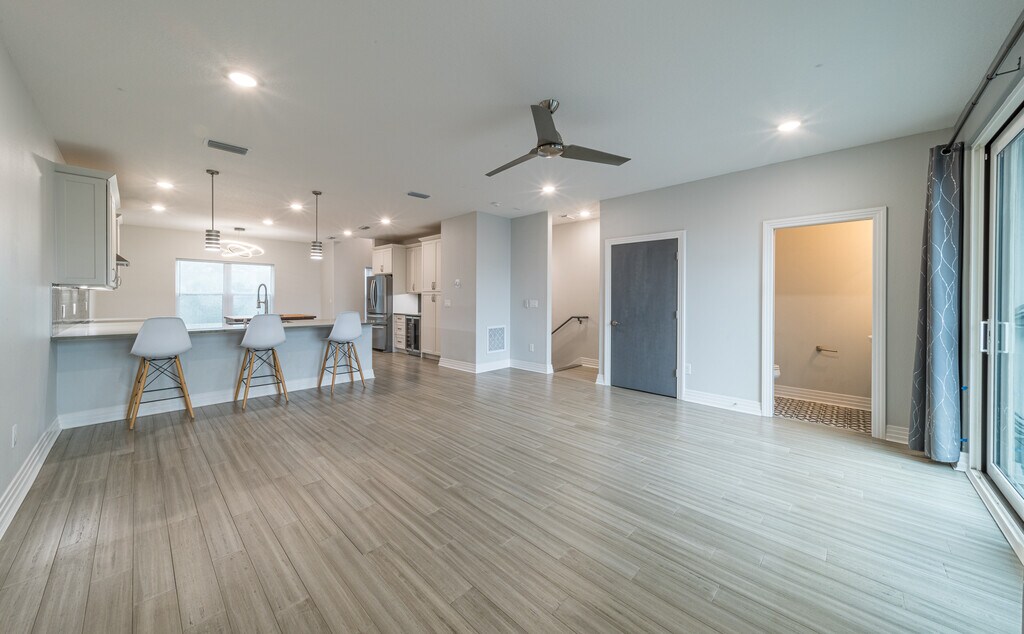 Welcome to 2325 1st Ave S, a stunning 3-bedroom, 3.5-bathroom townhouse offering 2,395 square feet of refined living in the heart of the Grand Central District. Built in 2021, this modern residence delivers an exceptional blend of style, comfort, and convenience. Soaring 10-foot ceilings throughout create an airy, expansive atmosphere that elevates everyday living. Every detail has been thoughtfully designed for those who appreciate quality craftsmanship and move-in ready luxury. The chef-inspired kitchen stands as the true heart of this home. A dual island configuration provides ample space for meal preparation and casual seating, perfect for entertaining guests or enjoying relaxed family dinners. Solid maple cabinetry by Woodland Cabinetry features under cabinet lighting, dovetail drawers, and soft-close hardware for a refined touch. Quartz counters offer both durability and timeless elegance. An upgraded Samsung stainless steel appliance package includes a 30-inch gas range and upgraded Whirlpool refrigerator, while a separate beverage cooler adds everyday convenience. Retreat to the primary suite, where his and her closets with custom built-in shelving ensure organized, stress-free living. The open floor plan seamlessly connects living spaces, enhanced by hardwood flooring and natural light streaming through hurricane impact windows. High ceilings and thoughtful architectural details create a warm, inviting atmosphere throughout each level of this multi-story residence. Outdoor living reaches new heights with two generous decks. The second-floor deck spans approximately 464 square feet, while the rooftop terrace offers 262 square feet of decking and nearly 500 square feet of pet turf with breathtaking views of the downtown St. Pete skyline and Tropicana Field. A climate-controlled oversized garage accommodates 3.5 vehicles, and a private driveway fits four additional cars with ease. Inside the garage, a Tesla EV charger ensures hassle-free electric vehicle ownership. This unbeatable location places you within walking distance of local favorites including Black Crow Coffee, Petes Bagels, the Dog Bar, Grand Central Brewhouse, and the Oyster Bar. Positioned perfectly between downtown and the beaches, this Grand Central District address offers the ideal lifestyle for working professionals or those seeking a relaxing urban retreat. Smart home pre-wiring, dual HVAC systems with NEST thermostats, and Icynene spray foam insulation deliver modern efficiency and comfort year-round. This property is also located in a non-flood, non-evacuation zone. This exceptional townhouse combines privacy, community, and unmatched quality in one of St. Petersburg's most desirable neighborhoods. Schedule your private showing today and experience the comfortable, convenient lifestyle that awaits at this remarkable residence. Minimum 12-month lease with longer lease options available. Potentially open to 6-10 month lease for higher negotiated fee. Property is rented unfurnished. Tenant required to pass background and credit check along with obtaining a renter's insurance policy. Tenant responsible for all ongoing monthly utilities (electric, sewer/water, gas, cable/internet) and performing general maintenance of AC units such as replacing air filters (these will be provided for convenience).