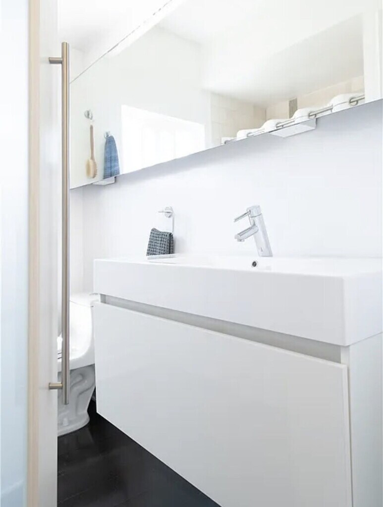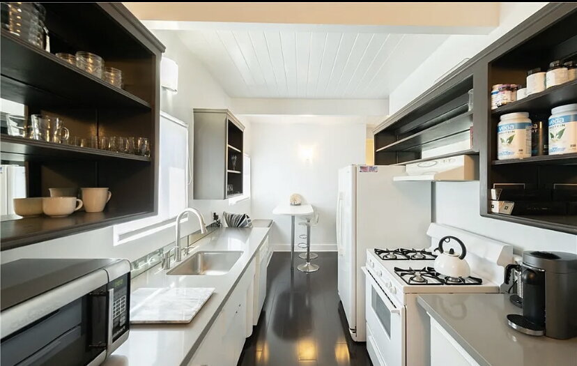 This top floor condo is a rare opportunity at 2325 Kansas Ave. It has a well laid out floor plan with high ceilings, making the 650 sq feet feel much bigger. It has east/west exposure, creating a light and airy atmosphere. It has richly stained floors, adding a sophisticated touch. It has quartz counters and open shelving in the kitchen for a modern look. It has a generously sized bedroom with a wall of closets for good storage. It has laundry hookups for your own stackable washer & dryer. It has an updated bathroom with modern vanity. There is a pool in the courtyard and common area decks for entertaining. The building is located across the street from Whole Foods and the Virginia Avenue Park. Great location near shops and restaurants. Two miles from the beach.