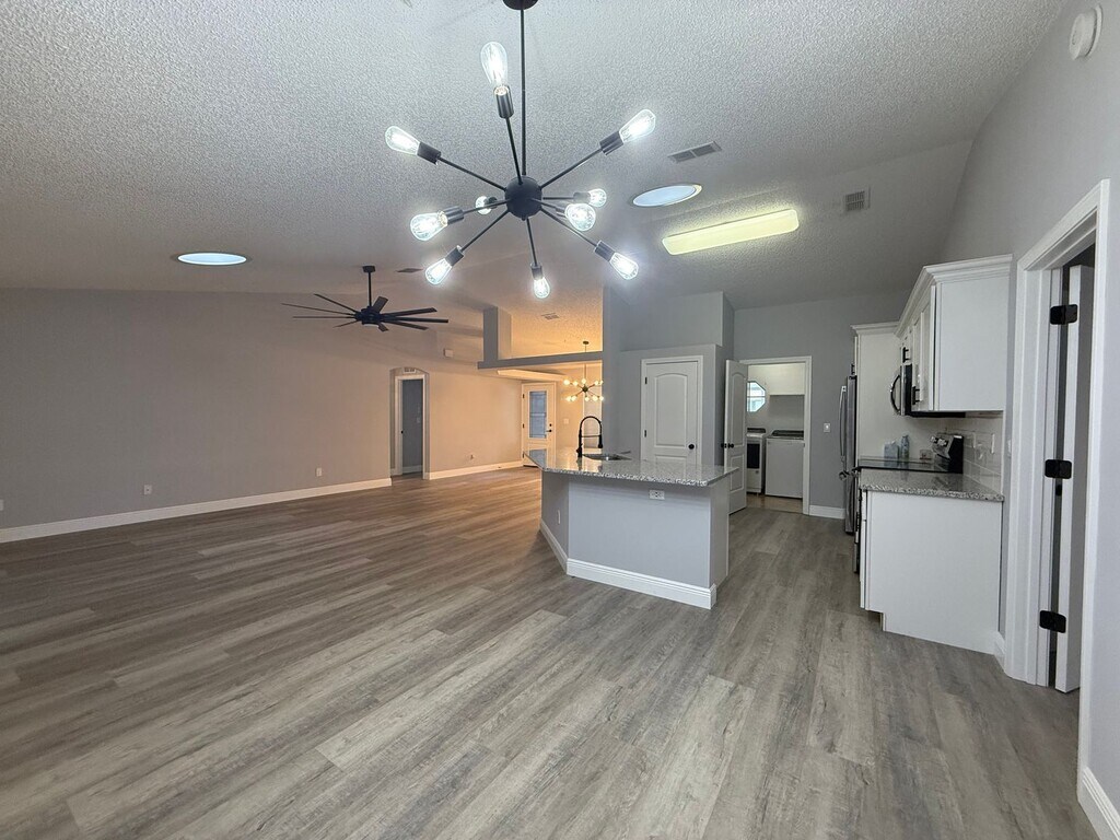 Beautifully updated 3-bedroom, 2-bath home with 2 car garage located in the desirable Florida Shores community. This property features an open floor plan with vaulted ceilings and laminate flooring throughout, creating a spacious and inviting space to relax with your family. The home sits on a generous lot, offering plenty of outdoor space, along with a charming front screened-in lanai perfect for enjoying the Florida breeze. The kitchen is equipped with stainless steel appliances and flows seamlessly into the living and dining areas great for entertaining. There is a dedicated laundry room. This home is just a 20-minute drive to the sandy shores of New Smyrna Beach. Move in and enjoy style, and a prime location. Lawn & utilities are tenant responsibility. No smoking/Pet may be considered. 1st months rent & security deposit equal to 1 months rent required for move-in, background/credit check required. All Blue Palm Property Management residents are enrolled in the Resident Benefits Package (RBP) for $50.00/month which includes liability insurance, credit building to help boost the resident’s credit score with timely rent payments, up to $1M Identity Theft Protection, HVAC air filter delivery (for applicable properties), move-in concierge service making utility connection and home service setup a breeze during your move-in, our best-in-class resident rewards program, on-demand pest control, and much more! More details upon application. Edgewater Public School Grades: PK-5Distance: 1.8 mi New Smyrna Beach Middle School Grades: 6-8Distance: 3.3 mi New Smyrna Beach High School Grades: 9-12Distance: 3.7 mi