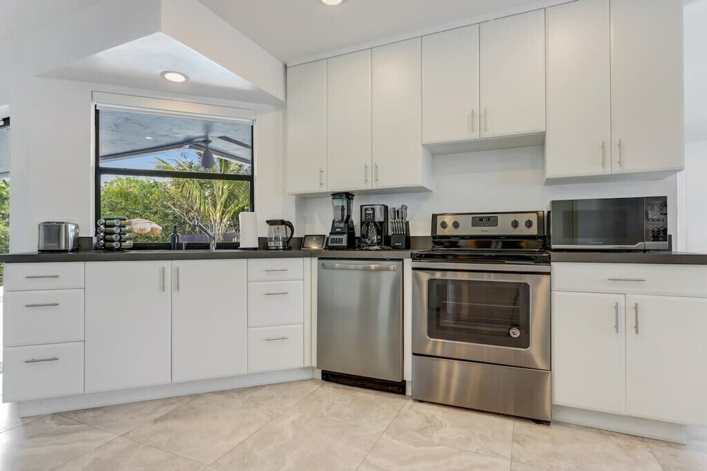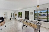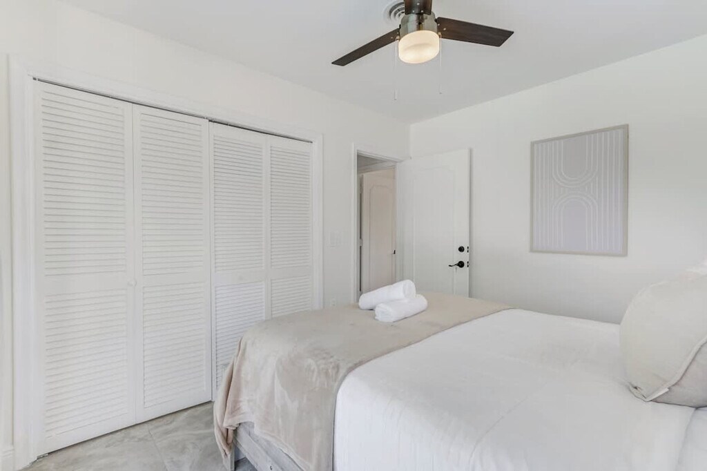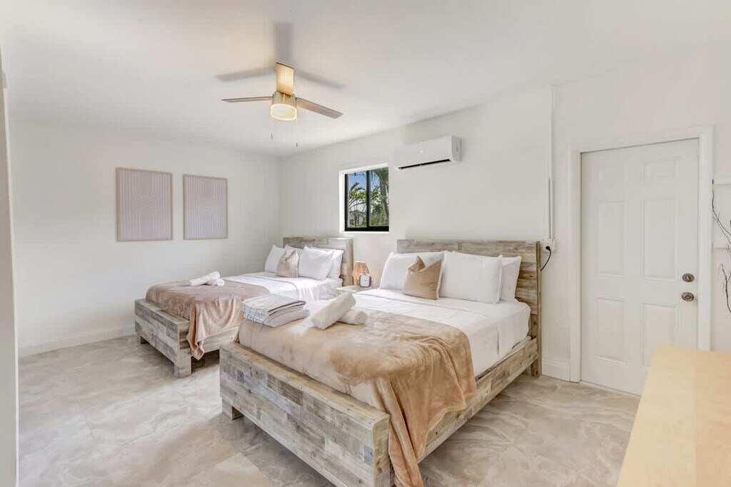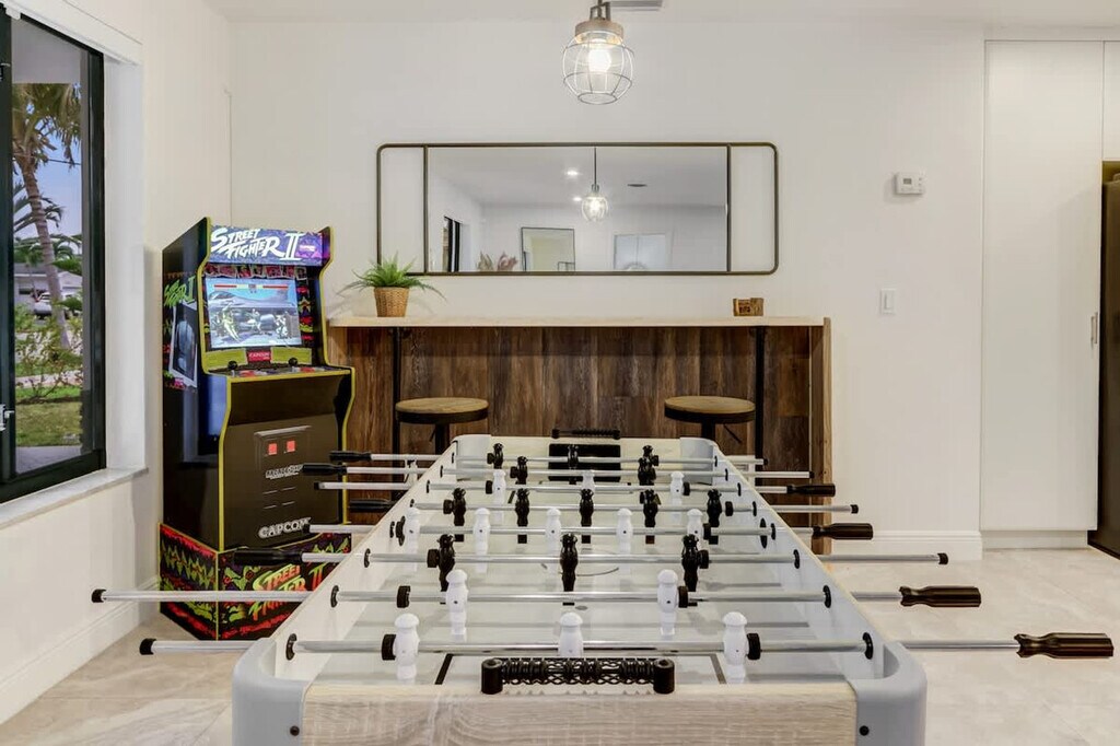 Feel at home in this breathtaking lakefront oasis villa located in the heart of Miami, with a unique setting inspired by a refreshing Wabi Sabi concept. This hidden gem features five bedrooms, two bathrooms, a heated pool, arcade games, pool games, a gazebo with lights, free parking for three vehicles, and high-speed internet (800Mbps). If you'd like to have the pool heated during your stay, please let me know at least 48 hours in advance for $50 per day. This is a pet-friendly property; please enter how many pets you are bringing with you before booking. Located in an upscale and safe area of Miami, this villa is surrounded by lakes and lush greenery. It's close to beautiful beaches and near the Aventura Mall, a premier shopping destination in South Florida, renowned for its luxury shopping and nightlife. The area is family friendly with plenty of activities such as restaurants, golfing, and entertainment. Aventura Mall is a 5-minute drive away, Sunny Isles Beach is a 10-minute drive, Fort Lauderdale Airport (FLL) is a 10-minute drive, Miami International Airport (MIA) is a 20-minute drive, and Brickell is a 20-minute drive. The house is very close to I-95 for easy access throughout South Florida by car and close to the main bus depot for easy bus transportation. Please clean up after using the BBQ; if the grill is not cleaned, an extra $50 cleaning fee might apply. No smoking is allowed inside the house. The landscaper will enter the property for scheduled lawn maintenance every 15 days, and the pool technician will conduct pool maintenance twice a week. Four single double-thick air mattresses can be provided upon request. [SI]