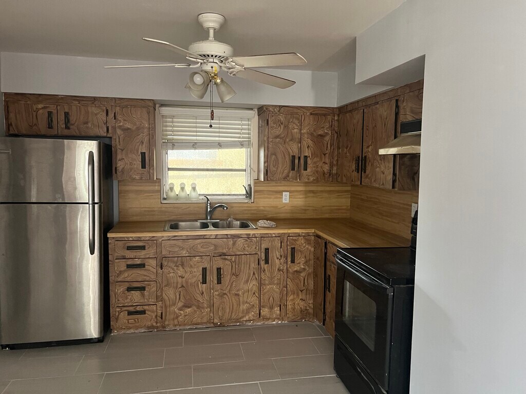 3 bedroom,one bathroom in the house and 2 one in the garage.Very big backyard,corner house.updated kitchen and bath.quite nice neighborhood