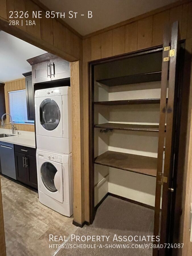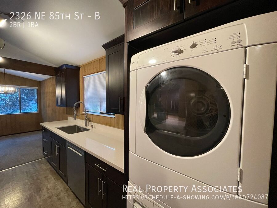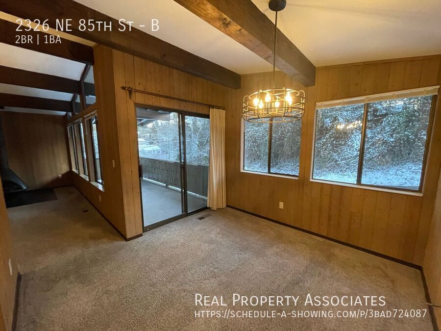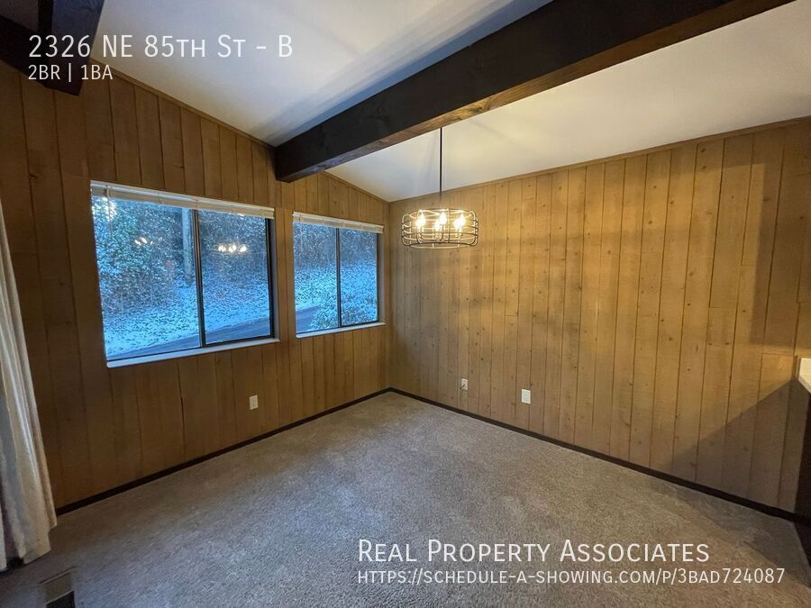 Large unit in Triplex. This 2-Bedroom 1-Bathroom is located on a quiet road in Wedgwood. Easy access to restaurants, shopping, and close to parks including Maple Leaf Park and popular Magnuson Park. Large living room with a free-standing wood-burning fireplace, vaulted ceilings, and dining area. Spacious patio perfect for relaxing during summer. Kitchen with quartz countertops, stainless steel appliances, and ample cabinet space. The house gives a cabin feel with its unique cedar walls throughout the home. Conveniently located near Lake City Way, and I5. Washer/ Dryer in unit. Garage space included with storage, the second car can park in front of the garage. No pets Water/ Sewer/ garbage- $100 monthly flat fee. Tenants pay for electricity/ gas directly. Application fee per adult $45 Security performance deposit $1,500 Renters Insurance is required. Garage Laundry Vautled Ceilings Wood Fireplace