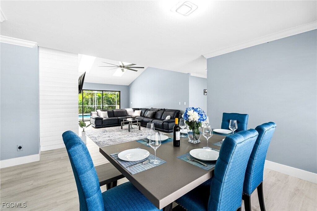 This is a VACATION RENTAL only. Owner will not consider an annual rental. Weekly rentals permitted. Welcome to Villa Linda! Relax and enjoy this spectacular direct sailboat access waterfront home set up to immediately welcome you into Southwest Florida paradise! This fantastic 3-bedroom,2.5 bath solar heated pool home is on a beautifully maintained property with lush tropical landscaping. It is in a quiet neighborhood conveniently located near various shopping centers,restaurants,and golf courses. Living Room: The spacious living room is bright and gives a beautiful view of the lanai,pool and canal. Make yourself comfortable and watch a movie on the flat-screen tv while relaxing on the large sectional sofa or light the fireplace for some ambiance. Kitchen/Dining Room: Do you enjoy making yummy treats for you,your family,and your loved ones? The kitchen has granite counters and is fully stocked with all the appliances you might need to produce your own culinary creations. There is a breakfast nook with seating for four located right off the kitchen to enjoy brunch or a quick bite with a lovely view. There is a lovely dining room table set for six. Master Bedroom/Bathroom: You won't find a retreat more serene than the master bedroom offering a view of the pool. It features a flat-screen tv,a King-sized bed,walk in closet and a seating area. It also features a beautiful en-suite,with his and hers vanities,and a large walk-in shower. Guest Bedrooms/Bathrooms: The first guest room offers a cozy Queen-size bed,flat-screen tv,and private access to the lanai through the large glass sliders. The second guest bedroom offers a Queen-size bed and flat-screen tv. The guest bedrooms share the second bathroom with a spacious shower/tub combo and doubles as the pool bath with direct access to the large pool. Pool/Lanai: Enjoy your company on the lanai,which offers multiple seating areas for gatherings where you can relish relaxed conversation and a cocktail. Better yet,have dinner poolside with the provided propane gas grill and dining area that seats up to six people. Go for a swim in the beautiful solar heated pool or enjoy sunbathing in the beautiful Florida heat on the lounge chairs available. You can relax under the stars or drop a line in the water and catch dinner! Feeling adventurous? Enjoy the neighborhood with the bikes provided for your use. There is plenty of entertainment available for Everyone! Experience an easy,comfortable,and relaxing getaway to the Sunshine State at Villa Linda. Book Today!