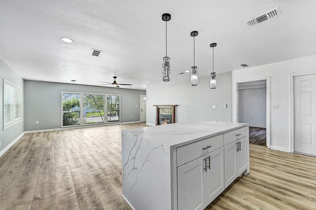 LOCATION LOCATION LOCATION! Up for immediate availability is this UPDATED & modernized 3 bedroom with flex room (possible 4th bedroom) 2 bath home centrally located in Galveston. Modern updates to include a show-stopper bright open kitchen with sparkling quartz countertops,abundance of white shaker cabinetry,easy cleanup LVP flooring throughout (no carpet!),central heat & A/C,& stainless appliances. Abundance of windows let in a lot of natural light. Flex room with a separate entrance with it's own minisplit unit would be a perfect home gym or office - or even a 4th bedroom. Washer & dryer as well as refrigerator included! Feel the Gulf breezes from your oversized fenced back yard and deck spaces. Enjoy being a short bike ride away from the BEACH,grocery stores,& restaurants! Just minutes from Galveston's historic downtown,cruise terminals,restaurants,shopping,UTMB,A&M,& Galveston College. Easy access to Broadway which takes you to I-45. **Pets case by case** MLS# 98005878