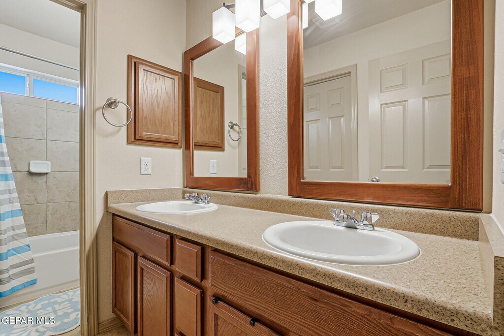 Amazing 2-story home with stunning curb appeal! This spacious residence features 4+ bedrooms and 2.5 baths. The living room boasts high ceilings,creating a bright and airy atmosphere. The kitchen comes equipped with a stove,micro-hood,and dishwasher,along with an informal dining area. On the first floor,you'll find a TV room with built-in shelving and a convenient 1/2 bath. The primary bedroom,also located on the main floor,offers an ample walk-in closet and a primary bath with dual sinks. Upstairs,there are 3 additional bedrooms,plus an extra room that can serve as an office or a 5th bedroom. The second bathroom offers dual sinks and separate toilet and shower areas providing privacy at busy times. The laundry room is conveniently situated on the main floor. The good-sized backyard features a covered patio,an extended cement slab,and a grassy areaperfect for outdoor enjoyment. The home includes a two-car garage with an opener. Located near schools,with the city park at the end of the street,this home is within walking distance to Pebble Hills High School. It offers nearly 2,000 square feet of living space and so much more! Come see for yourself and make this beautiful house your home!