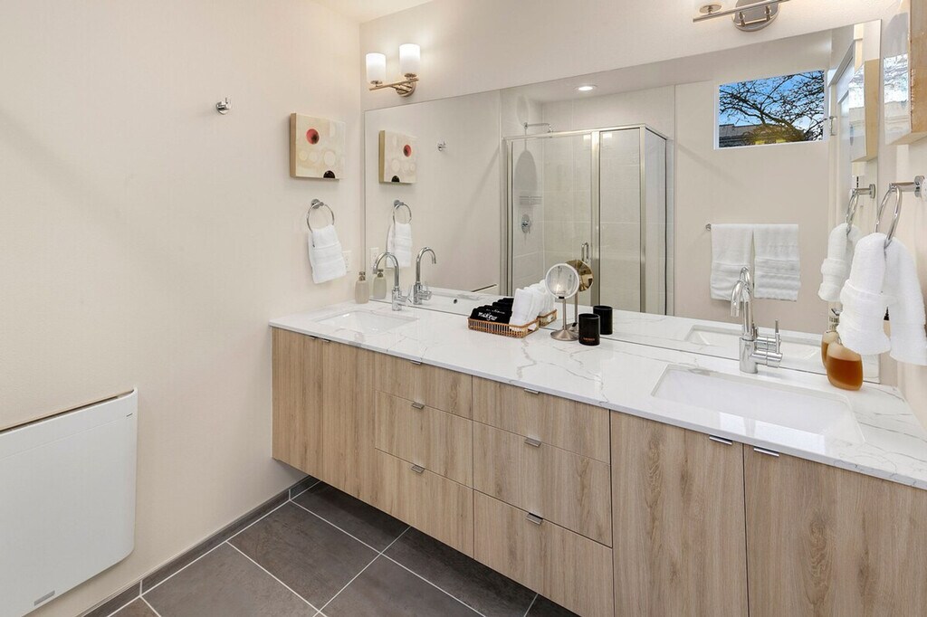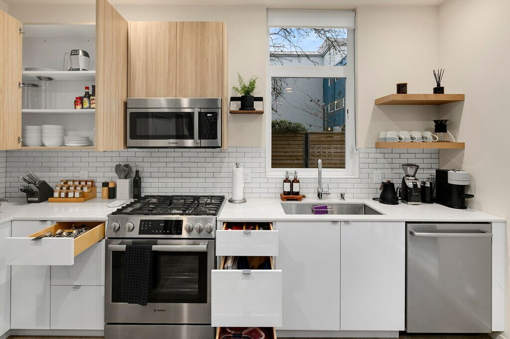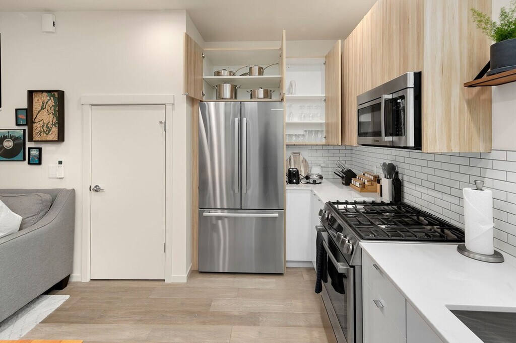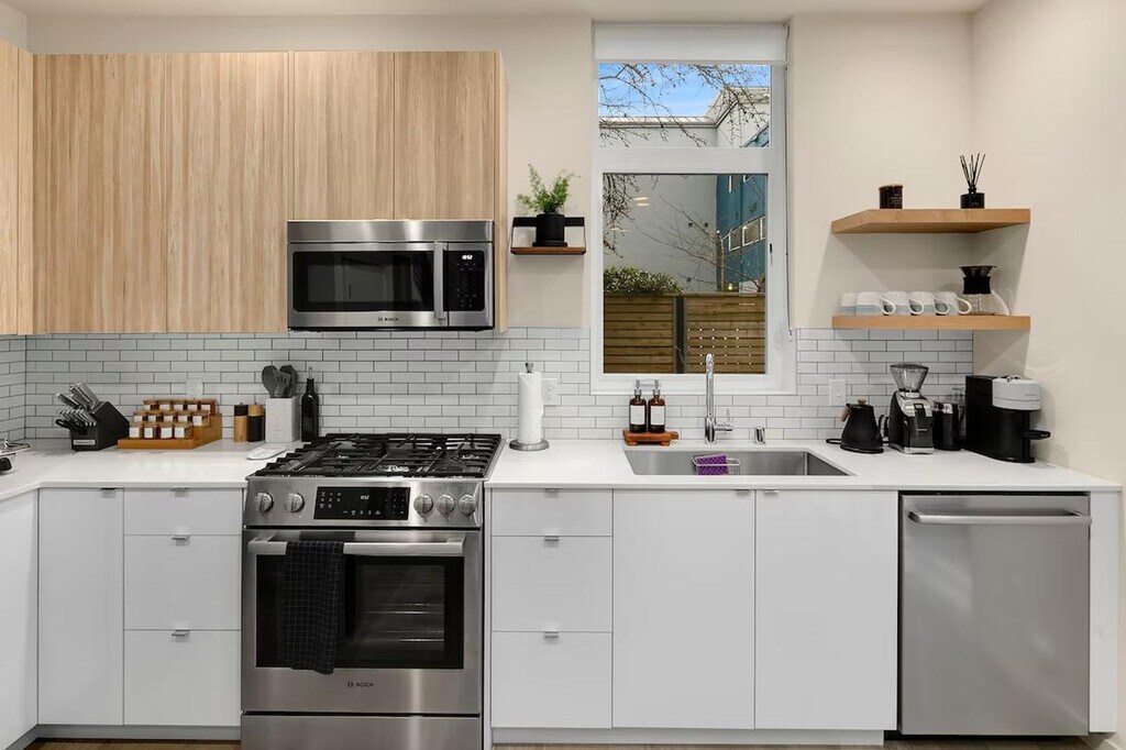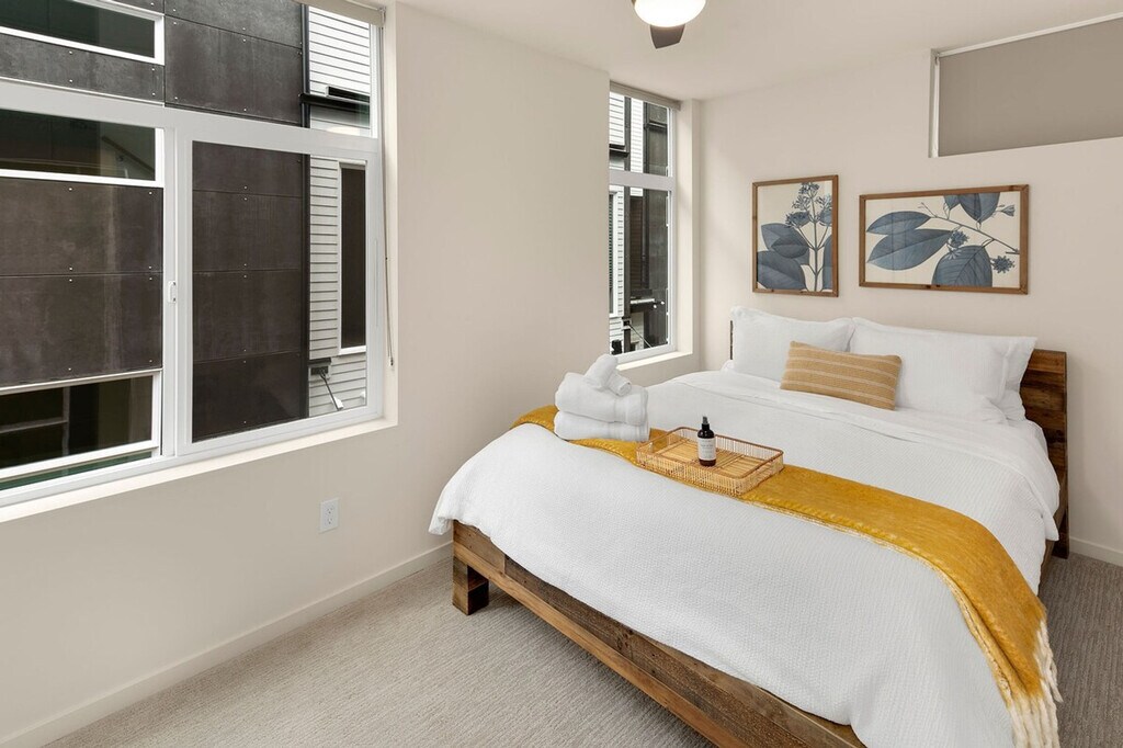 Quaint Capitol Hill home, steps from 15th St, offers a walk score of 98 and is near shops, dining, and light rail. This 4-story townhome, including a rooftop, is part of a gated complex and features no steps at the entrance. Enjoy a private rooftop patio with stunning city views. On a quiet neighborhood street while being a block away from 15th St and the vibrant neighborhood of Capitol Hill, this home is the perfect spot to stay for your Seattle visit. With a walk score of 98, you are within walking distance to coffee shops, restaurants, grocery stores, and multiple public transit options including the light rail, just a 7-minute walk away. The home has 2 bedrooms and 2 bathrooms on separate levels for privacy, and you get your own private rooftop patio with views of downtown, the Space Needle, and Puget Sound. The first floor includes a living room, kitchen, and dining area with air conditioning. The second floor features a bedroom with a queen bed and a hallway bath with a bathtub and shower combo, heated only. The third floor hosts the primary bedroom with a queen bed and an ensuite bathroom with a shower, also air-conditioned. The fourth floor boasts a rooftop patio with outdoor seating and great views. Parking is not dedicated, but a city-issued guest parking permit is provided for free street parking. Note that Capitol Hill is a densely populated area, so street parking is first-come-first-served and can be hard to find depending on the time of day. Paid public parking is available nearby. Capitol Hill is the heart of Seattle, a prominent hub for food, music, and nightlife. It is also an excellent neighborhood to live in. This home is a block away from 15th Ave, a micro-neighborhood of Capitol Hill, which offers great coffee, restaurants, and nightlife. With a high walk score, there are many dining, shopping, and entertainment options within walking distance. It is just minutes' walk to Capitol Hill Light Rail Station, which takes you to other parts of the town, including the airport. Ride-share services like Uber and Lyft are highly recommended. This townhome is not handicap-friendly, and guests must be comfortable with stairs as there are multiple stories. Guest access is granted via a smart lock. The home is not pet-friendly, with a $500 fine for unauthorized pets. Strictly no parties or events, with quiet hours between 10 pm and 8 am. No smoking or vaping of any kind is allowed anywhere on the property, including outdoor areas, and no digital piracy or shoes in the home, with a $500 fine per violation. A Ring Camera is located by the front door. The home is equipped with high-speed internet for streaming or remote work needs. A smart TV with Netflix, Hulu, and HBO logged in for use is available. A laptop computer is not included. Registration Number: STR-OPLI-21-001305 [SI]