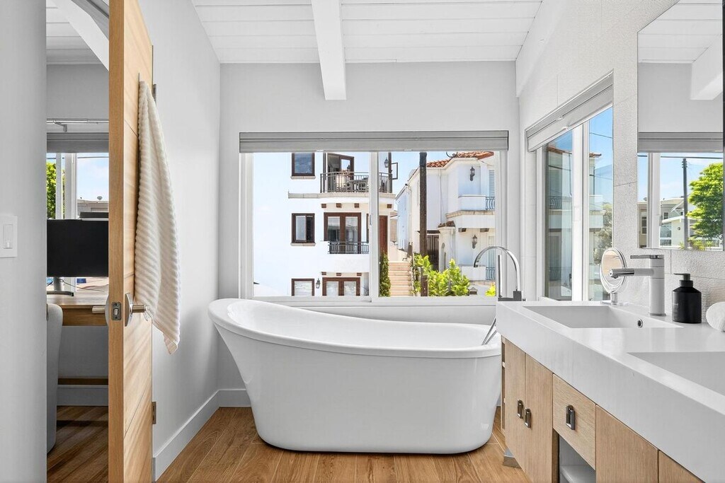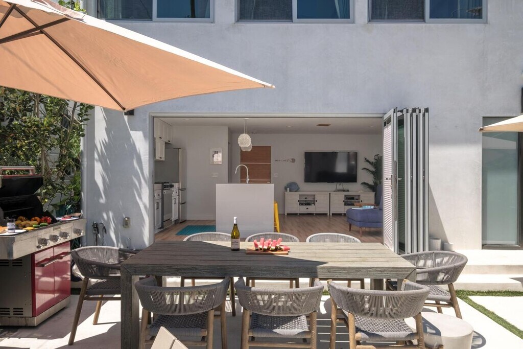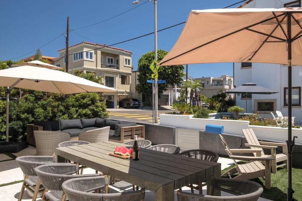 Steps from the Sand – 3BR Manhattan Beach Rental This three-bedroom vacation rental is located just steps from the beach in Manhattan Beach and sleeps up to six guests. You're within walking distance of The Strand, shops, restaurants, and the pier. Bright and open home with neighborhood views. Living & Dining Open-concept layout with floor-to-ceiling windows and panoramic views Fully equipped kitchen Three outdoor seating area: comfy sectional, 8 person dining table with grill, and another Adirondack area with views of the ocean Bedrooms Primary bedroom: King bed, premium linens, down duvet, Smart TV Guest bedroom: King bed (can be arranged as two twin), premium linens, Smart TV Third bedroom: Two twins, Smart TV Additional Amenities Washer and Dryer High-speed WiFi Smart TVs in living room and both bedrooms Guest Access Entry via smart lock; code sent morning of check-in Pet-friendly (dogs only): $100 per pet, per stay (max 2 dogs) No cats allowed Pets are not allowed on furniture or beds Clean up after your pet before checkout Unauthorized pets: $250 fine per pet plus additional cleaning fees Only a short stroll from the sand, this home offers comfort, convenience, and the best of Manhattan Beach right at your doorstep. Whether you're here to relax, explore, or catch some waves, this is the perfect base for your stay!