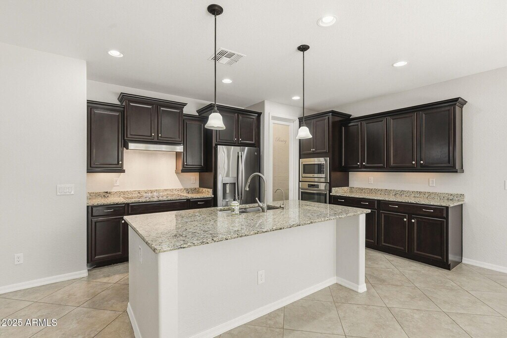 This amAZing Gated Fulton Ranch home has been freshly painted,deep cleaned including the ducts,and landscaping nicely groomed. This 3 bedroom,2 bath home has neutral carpet in the bedrooms,and beautiful neutral tile in all the right places including hallways. Granite counters in the kitchen and tons of cabinets as well as closets for storage. The garage is nice and clean with a hanging rack for additional storage & a water softener. You'll love this corner lot home in the Reserve at Fulton Ranch where you'll enjoy pickleball courts,basketball,a playground for kids and a wonderful community pool with kids pool,too. No SPDS with this lease listing.
