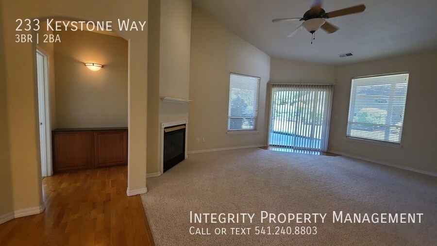 Enjoy peaceful living in this well-maintained 3 bedroom, 2 bathroom home located on the Eagle Point Golf Course. With nearly 2,000 square feet of space, this single-level home offers a spacious layout including a bright kitchen with ample cabinetry, stainless steel appliances, and solid-surface countertops. The living room features vaulted ceilings, a gas fireplace, and large windows that bring in natural light and provide views of the manicured backyard. The primary suite includes a soaking tub, walk-in shower, and private patio access. Outside, the low-maintenance landscaping, covered entryway, and mature trees create an inviting setting just steps from the fairway. Frequently Asked Questions: STATUS: Available Now PET RESTRICTIONS: 2 max, no dangerous dog breeds, $500 additional deposit required. SMOKING: No smoking, no vaping, no marijuana INCOME REQUIREMENT: Gross 3 times monthly rent CREDIT REQUIREMENT: At least 600. MOVE-IN COSTS: First Month Pro-rated, Security Deposit $3250 DEPOSIT TO HOLD: $500 upon approval, holds up to 7 days. SHOWING INSTRUCTIONS: Schedule Online: APPLICATION INSTRUCTIONS (HOW TO APPLY): Apply online. All complete applications are processed as they are received. First approved applicant to submit $500 deposit gets unit. Go to If applying with a Pet or Assistance Animal, complete profile at HOUSING ASSISTANCE: Income must meet 3x the amount of tenant portion, plus utilities. More Information: • Property Description Details • AREA INFORMATION: Located in a great neighborhood on the Eagle Point golf course. FLOORING: Hardwood/Carpet GARAGE/PARKING : 2 car garage plus driveway parking KITCHEN APPLIANCES INCLUDED: Fridge, oven/stove, microwave, dishwasher LAUNDRY APPLIANCES INCLUDED: Washer and Dryer PROPERTY TYPE: Single Family Dwelling UTILITIES: Tenant responsible for power, gas, trash, water/sewer. YEAR BUILT: 2000 YARD: Grass and mature landscaping, tenant responsible for landscape maintenance • Application, Lease Terms, and Fees • *ADDITIONAL FEES NOT INCLUDED IN RENT: APPLICATION FEE: $55 PET SCREENING FEE: $30 per pet RENTER'S INSURANCE: Required unless exempt by ORS 90.222 APPLICATION TURNAROUND TIME: 2-3 business days LEASE DURATION: 12 months • HOA Instructions • Available Upon Request *All information is deemed reliable but not guaranteed and is subject to change.*