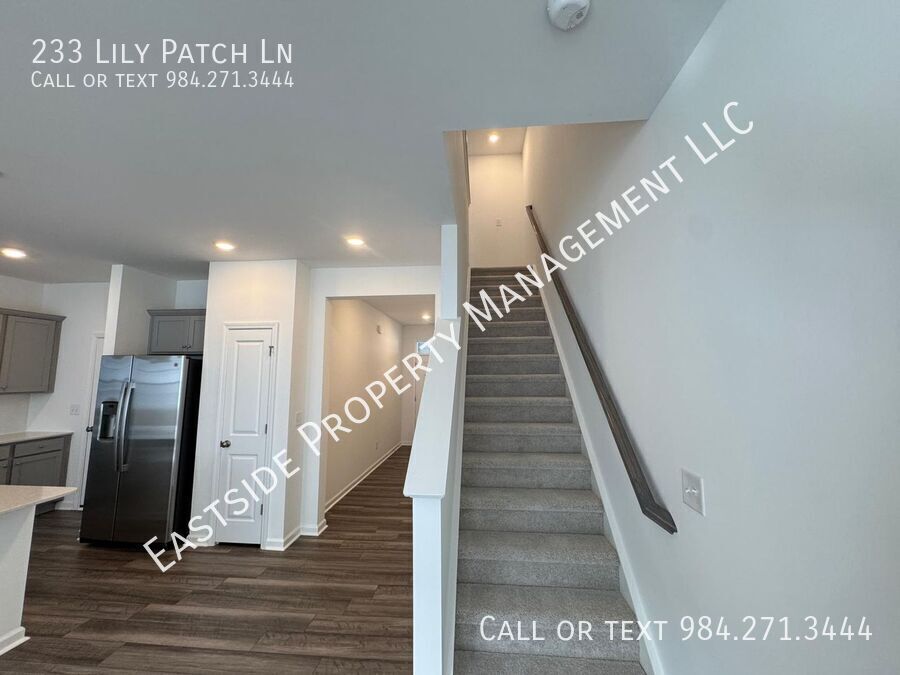 This new two-story townhome has an inviting contemporary design. The main-level Great Room flows seamlessly into the dining room and chef-caliber kitchen, while the patio is perfect for outdoor activities. Upstairs are two secondary bedrooms and the owner's suite, complete with a walk-in closet and full-sized bathroom. Washer-dryer, Stainless steel appliances included. Just minutes away is the downtown Smithfield offers boutique shopping, dining, and cultural attractions rich in local history. Downtown Clayton, less than 10 miles away, features charming breweries, fitness studios, and more. For commuters, Holts Landing provides quick access to major employers such as Amazon, Grifols Therapeutics, and Novo Nordisk, all in minutes' drive. Property Highlights: Bedrooms: 3 large bedrooms with ample closet and storage space Bathrooms: Luxurious 2 full baths + 1 half bath Kitchen: Modern kitchen with lot of cabinet space and updated appliances Living/Family: Open floor plan, lot of natural light, perfect for relaxing, family time and entertainment Outdoor Space: large backyard, ideal for gatherings or quiet evenings Parking Options: On the driveway and attached garage PLUS: Sidewalks and streetlights for your and your kids safety Friendly neighborhood with HOA keeping the community quiet and beautiful. Tenants responsible for utilities & landlord pays for HOA and HOA covers grass. Utilities Not Included In Rent