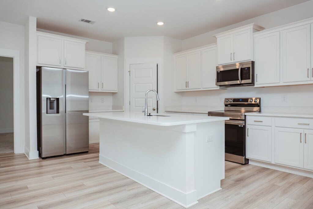 Available 3/1/2026! 4/2 cottage home with 1815 sq ft, double car garage, & covered back porch. This open floor plan has 9' ceilings throughout with tray ceilings &ceiling fans in the great room and master bedroom. Kitchen boasts quartz countertops, stainless steel appliances, beautiful, upgraded wood cabinetry! Luxury vinyl plank flooring in all areas except bedrooms. Master bath has garden tub, separate shower, double vanity, water closet, and a large walk-in closet w/access to laundry room for owner's convenience. Pets will be allowed with owner approval and a $400 non-refundable Pet Fee. No Smoking or vaping in unit. Applications are done online at