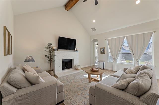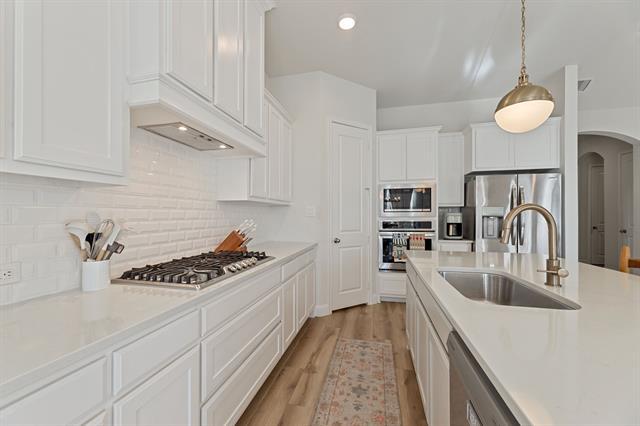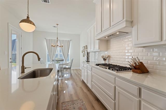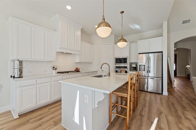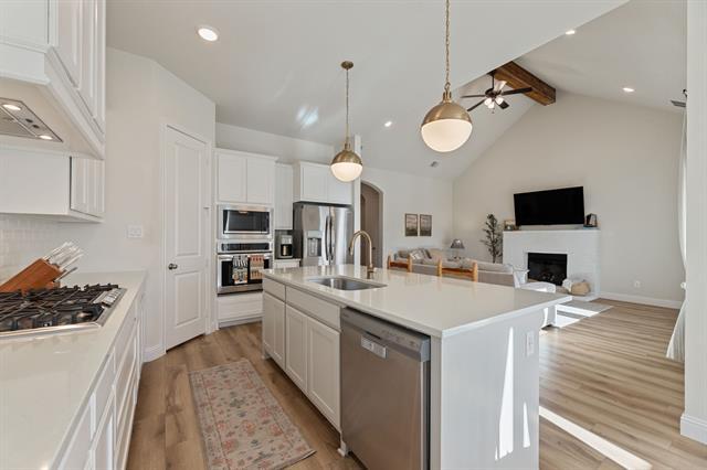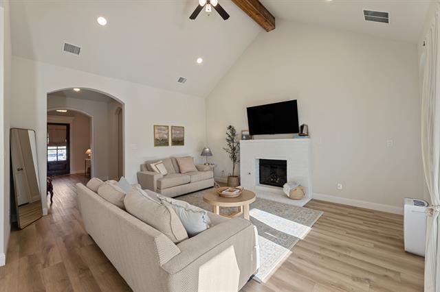 Welcome to 233 Observation, a stunning 3-bedroom, 2-bathroom single-story home located in the highly desirable Parks of Aledo community. Built in 2021, this 1,900+ square-foot home offers a modern open-concept design with stylish finishes throughout. The kitchen is the heart of the home, featuring sleek stainless steel appliances, including a gas cooktop, crisp white cabinets, a classic subway tile backsplash, and a spacious island that opens perfectly to the living area. The living room has a gas brick fireplace, creating an inviting space for relaxing or entertaining. The primary bedroom suite is tucked away at the back of the property and features an en-suite bathroom with a standalone shower and tub combo, spacious walk-in closets, and dual sinks. Two additional bedrooms provide flexibility for family, guests, or a home office. There is also a full utility room and a spacious two-car garage. The backyard is perfect for enjoying warm spring or fall afternoons and evenings, with an extended concrete slab and a well-maintained, landscaped yard. Enjoy the thoughtfully designed neighborhood, surrounded by over 12 miles of scenic hiking and biking trails, green spaces, and areas to connect with neighbors. With easy access to I-20 and top-rated Aledo ISD schools just a short walk away, this home offers the perfect blend of charm, comfort, and convenience. Come make this your home before someone else does!