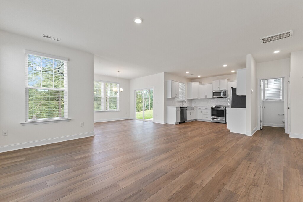 Bordeaux Floor plan - Step onto the inviting covered front porch and enter a spacious, open-concept first floor that seamlessly connects the kitchen, breakfast area, family room, and outdoor patio. The kitchen boasts an abundance of cabinetry, Profile stainless steel gas appliances, a stylish farmhouse sink, brushed nickel hardware, and quartz countertops in the kitchen. A 4-foot rear bump-out expands the breakfast nook, which opens to a covered porch and an additional 10x12 patio slab—perfect for outdoor gatherings. Luxury vinyl plank flooring spans the entire first floor, including bathrooms and laundry areas, offering both durability and elegance. Upstairs, the primary suite features a generous walk-in closet, dual vanity, and an oversized tile shower with a built-in seat. The loft provides a versatile space ideal for entertaining or relaxing. Additional highlights include a gas stove, tile backsplash, with premium finishes throughout. Washer and Dryer are included pet friendly with size and quantity restrictions. Lawn care is included in the rent! Listing proudly presented by The Abshure Realty Group, an Equal Housing Opportunity Provider. Please visit The Abshure Realty Group Property Management Website for details, applications, and screening criteria. Welcome Home!