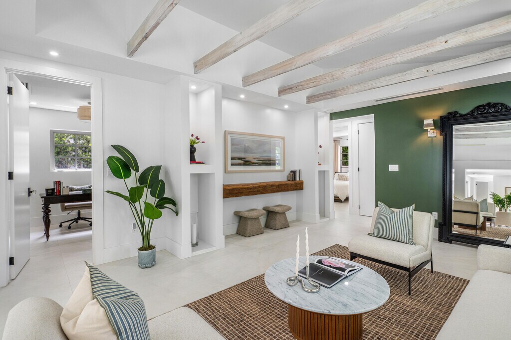 Available Dec - April! Enjoy the ultimate winter getaway in this fully renovated and fully furnished Flamingo Park home--blending historic charm, modern luxury, and an unbeatable West Palm Beach location. Reimagined in 2025 by award-winning Flamingo Park Development, this single-story residence offers effortless seasonal living with 4 bedrooms, 3.5 bathrooms, and high-end finishes throughout.Step inside to oversized porcelain tile flooring, exposed ceiling beams, beautiful natural light, and a striking dual-sided quartz-clad electric fireplace connecting the interior and exterior living areas. The chef's kitchen features a 48'' dual-fuel range, custom cabinetry, quartz countertops, and a large peninsula that flows into the dining and living spaces--ideal for entertaining during your sta