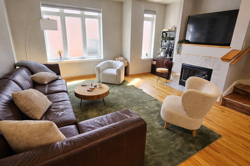 Experience expansive, multi-level living in this stunning Bucktown 3-bedroom, 2.5-bathroom townhome, available NOW. Spanning four full levels of living space, this home offers a rare and highly desirable layout that truly sets it apart. Thoughtfully designed with hardwood flooring throughout, the home features wood cabinetry, a breakfast bar, central heating and AC, in-unit washer and dryer, and a cozy fireplace. A private 2-car garage is INCLUDED in the rent. All bedrooms comfortably accommodate queen beds with furniture, while the primary suite easily fits a king bed with additional furnishings. The main level offers a spacious living room ideal for entertaining, plus a versatile bonus room on the lower level perfect for a home office, gym, or additional living space. Enjoy abundant closet space and storage throughout, along with the added luxury of two private balconies. Ideally located just steps from the El, Bucktown’s top restaurants, nightlife, parks, and more. This is a MUST SEE. Mandatory Resident Benefit Package: $40/month, including renters insurance, credit reporting for on-time payments, identity protection, and more. Listing posted by Hans Fleischmann [SYNDID 4156653 03222026]
