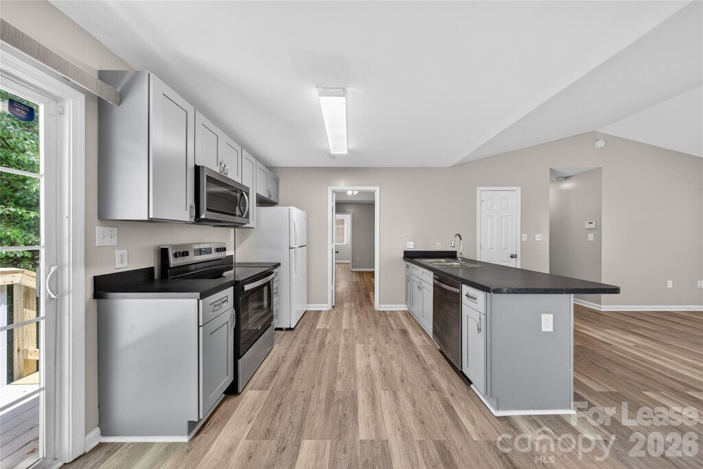 Experience modern living in this beautifully updated 3-bedroom,2-bath retreat. The open-concept layout greets you with vaulted ceilings and stylish new flooring that flows seamlessly from the living area into an updated kitchen. You’ll love the brand-new cabinetry and modern appliances. Retreat to the large primary suite,complete with a fully renovated en-suite bath. Two additional spacious bedrooms feature generous closet storage,while the guest bathroom has been tastefully updated with contemporary finishes. Enjoy out door living on the large deck. Separate laundry room,new water heater,fresh paint and new flooring throughout. Conveniently located close to shopping and restaurants. Minutes from UNC Charlotte,I85/I485 and the Lynx Blue Line. Small pets under 15lbs OK for a fee. MLS ID CAR4370714