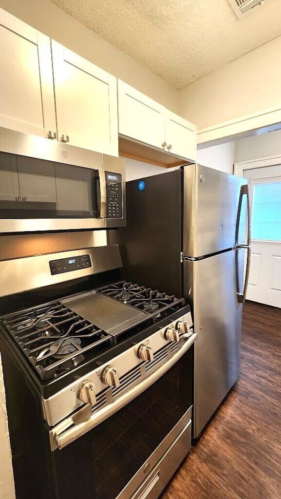 Darling 2 bed, 1 bath duplex in the Aurora Addition of NW OKC. Close to the Plaza District, NW 23rd St dining and OCU. Step into this lovely home with a large living room, beautiful wood floors and a mock fireplace plus built-in bookshelves. There is a large hallway closet, dining room and galley styled kitchen. The kitchen comes with quartz countertop, a gas stove, built-in microwave, refrigerator, and stackable washer/dryer. Dining room just off the kitchen. The two bedrooms are nice sized with plenty of closet space. Plenty of parking on side street, for your convenience. Please note that pet screening is required, as well as a nonrefundable pet fee of $150 plus a monthly pet rent of $20 per pet (limit 2). There are breed restrictions. Smoking and vaping are not permitted in this property There is 1 reserved covered parking. Don't miss out on this fantastic opportunity to call this lovely duplex your new home! Contact us to schedule a showing.