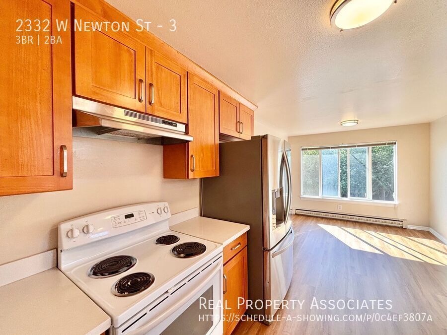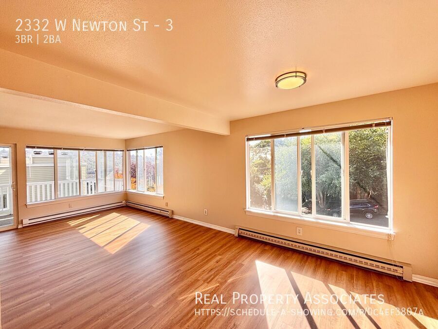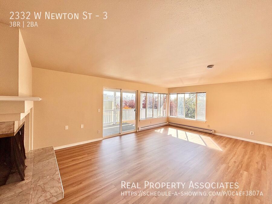 Welcome to this beautifully designed 3-bedroom, 2-bathroom unit part of a Triplex in the desirable neighborhood of Magnolia! Step into a wonderfully equipped kitchen with modern cabinets, countertops, and appliances throughout including a dishwasher. Continue in to find a dedicated area for dining that leads right into the large living room flooded with natural light and a fireplace for those colder months. Attached to the living room features a large balcony that connects to the primary bedroom. This balcony is carpeted, giving a cozy feel to the space, and covered for our rainy months. In the hallway you'll find two closets and in-unit laundry. Next there is a bathroom with a full bath shared between two of the bedrooms. The primary bedroom at the end of the hallway which connects to the balcony features a nice large closet for your storage needs, and its own private bathroom. Magnolia has so much to offer, with quick and easy access to downtown Seattle, Discovery Park, and grocery stores nearby you have everything you need in a close distance! 12 Month Lease Available! Water/Sewer/Garbage: Pro-rated based on occupancy Application: $45 per person/adult. Available Now, First & Deposit. Refundable Security Deposit: $3,195 1 pet max, under 35 lbs, no aggressive breeds - $30 pet application per pet - $300 refundable pet deposit and $35 monthly pet rent ***TO SCHEDULE A SHOWING***: Renter's legal liability insurance is required and part of the Benefits Package ($30 monthly). If qualifying legal liability insurance is purchased and provided by tenant to RPA, the benefit package can be reduced to $15 monthly for reduced benefits or waived upon request. Professionally managed by: Real Property Associates, Inc. Please contact or call *In-person Tour Only **Applicant Criteria - ***Please visit our company site at for accurate information regarding unit pricing and availability City Views Close To Parks/ Shops/ Restaurants Covered Balcony Easy Downtown Commute Full Kitchen Lots Of Natural Light Lots Of Storage Near Discovery Park Near Queen Anne And Ballard Private Balcony Quiet Neighborhood Small Pet Friendly Space Needle Views Tandem Parking