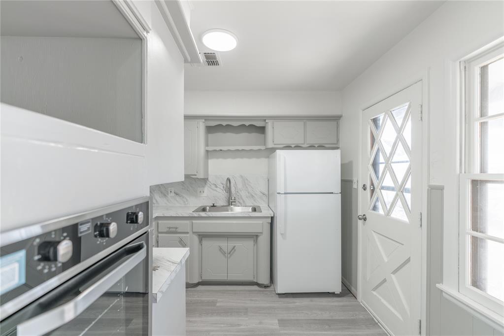 Looking for new? Check out this cute remodel. New flooring,paint,fixtures and appliances throughout. Tons of natural light throughout. Kitchen will come with refrigerator,farmhouse sink,and electric cook top and range built in. New painted kitchen cabinets too!! All three bedrooms are nicely sized,and all share a centrally located fully remodeled bathroom too! Laundry hookups in utility area and back porch is covered for protection from the rain if you like to hang outside. Come see this newly updated home and make it yours today!