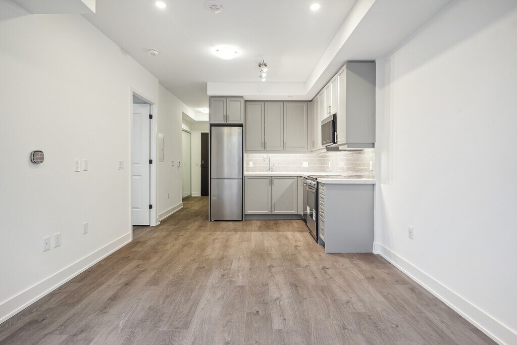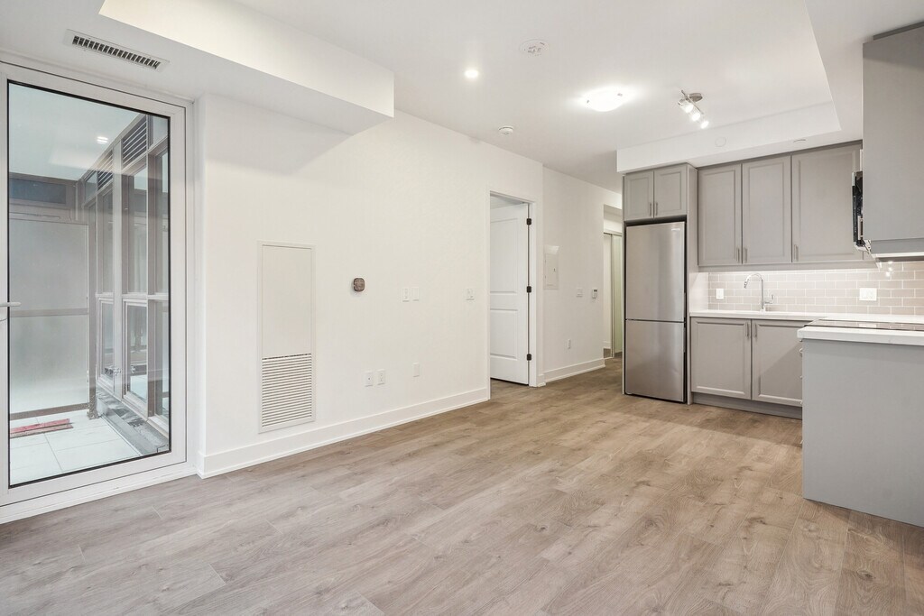 Set apart from other rentals, this stunning 1-bedroom + den combo in Fernbrook's prestigious new build offers unique ground-level access from an expansive patio, complete with a built-in gas hook-up for summer BBQs. Inside, you'll find a range of premium upgrades, including designer kitchen cabinets, pot lights, window blinds and sleek shower glass enclosures. The bedroom features a floor-to-ceiling window and a spacious closet, while the versatile den with privacy sliding doors can serve as a second bedroom or office. Beyond the unit, indulge in world-class amenities, including a 24-hour concierge, pet wash station, car wash area, a state-of-the-art gym, indoor pool, and so much more. Conveniently located near highways and GO transit, this condo offers a lifestyle of luxury and ease. Schedule your viewing today to see what makes this unit truly exceptional!