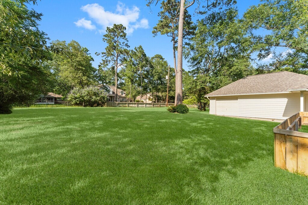 This beautifully updated one-story home sits on a half-acre lot in Carriage Hills,offering high ceilings,an open 3 bedroom floor plan WITH A HOME OFFICE/STUDY,and a cozy electric fireplace. The kitchen shines with new quartz countertops,stainless single-basin sink,wood-plank tile,a spacious island,and 42" cabinets with built-in roller drawers. The oversized tandem/3 car garage includes space for a workshop and a window unit AC for comfort. French doors lead to a large covered porch off the master suite,which features a jetted tub and walk-in closet. Bathrooms have updated countertops and fixtures,and the utility room offers ample storage and a sink. Community perks include basketball,pickleball,frisbee golf,a pool,fishing pond,gazebo,and direct access to the San Jacinto River and ATV trails. Zoned to The Woodlands schools. 5 minutes to I-45! Washer,dryer,and fridge included—move-in ready! Water softener & alarm system included! MLS# 51749699