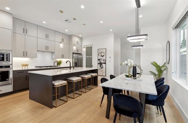 FOR LEASE ONLY - Luxurious And Modern Townhome with Three Floors And Open Concept. 4 Bedrooms - 3 Master Suites, 2 Car Garage, And Private Backyard. Amazing View Of Uptown From Front Balcony. Minutes Away From Shopping, Medical District, Dart Train Station and Uptown Dallas. This Townhome Was Built In 2022 and Still Feels Like New Inside.