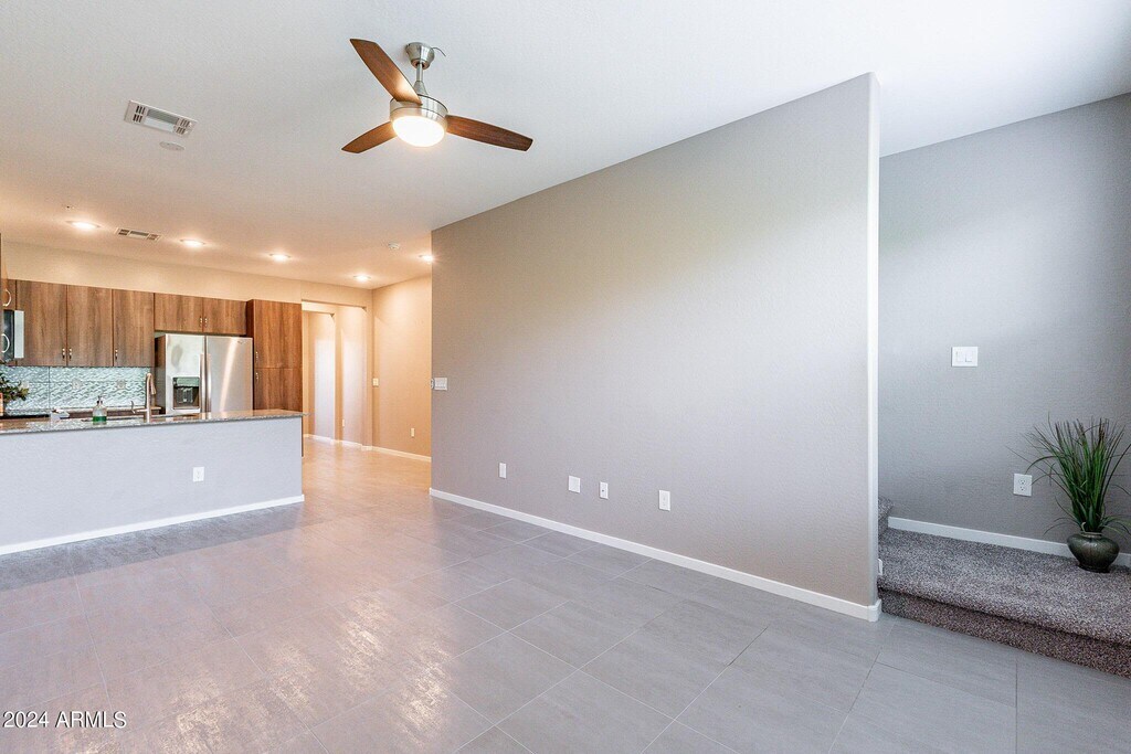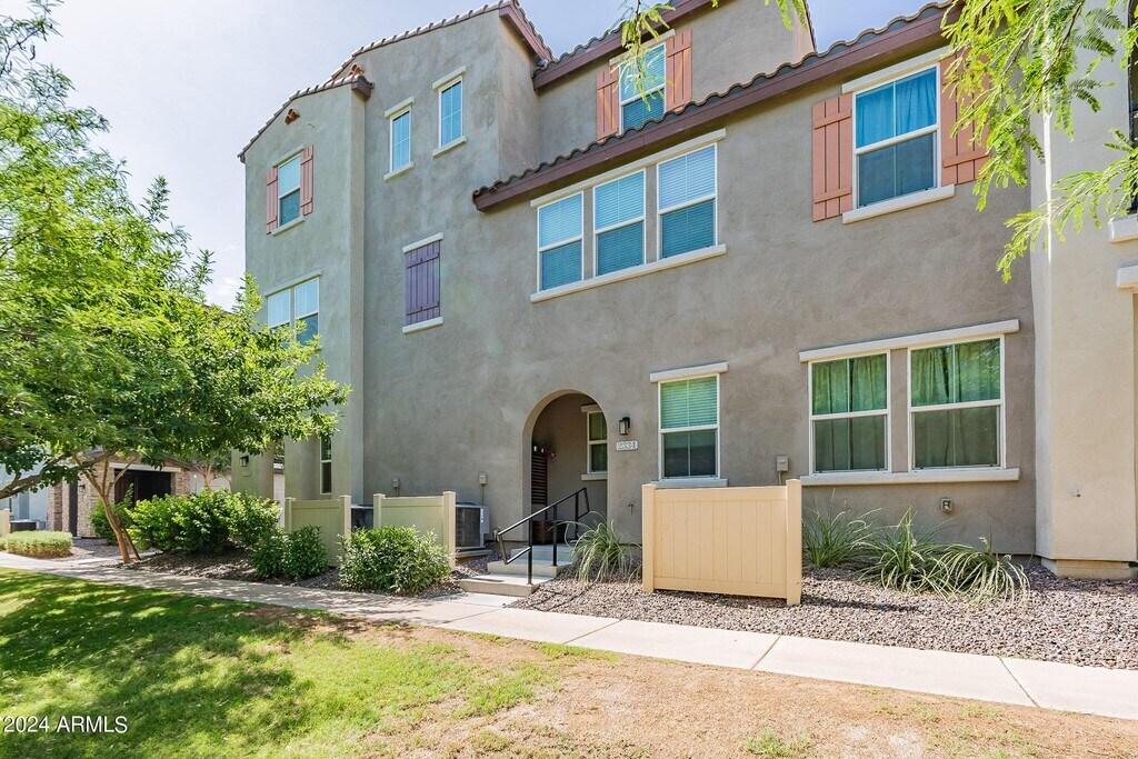 Rare,3 bedrooms / 2.5 Bathrooms townhome in Copper Leaf. Airy & light-filled home features an open concept floor plan,expansive moon white granite counters with Hex-Silver backsplash,and upgraded upper 36'' Zuri cabinets! 18x18 contemporary style tile in the family room,kitchen,and bathrooms,plus plush grey tone carpet in the bedrooms. Nine-foot ceilings,combined with expansive windows in the great room and dining area,create a generous living space for relaxing and entertaining,facing the greenbelt. Master bedroom w/on suite bath,upgraded shower,large walk-in closet,dual sinks. An attached 2-car tandem garage with ample storage is on the first floor. Community pool,dog park,multiple greenbelts,and 5 mins to hiking trails at South Mountain.