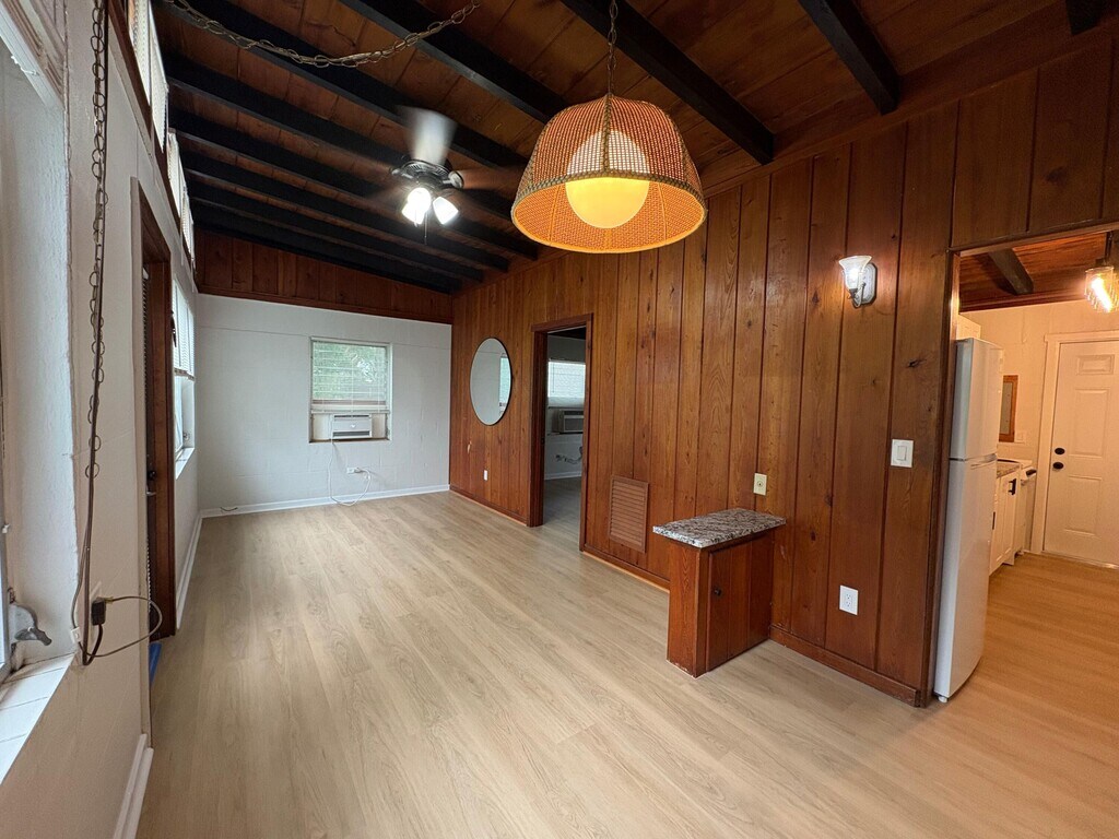 Rustic & remodeled 1 bedroom apartment in the heart of downtown Vero Beach. Features include vaulted tongue & groove ceilings with exposed beams, brand new kitchen with white shaker cabinetry and granite counters, updated bathroom, new LVP flooring throughout, new fans, fixtures and more. Conveniently located just steps from Pocahontas Park, restaurants, bars, art galleries, library and all that downtown Vero has to offer! First and security required to move in. Sorry, no dogs permitted. Owner/broker.