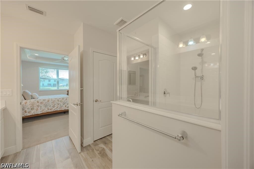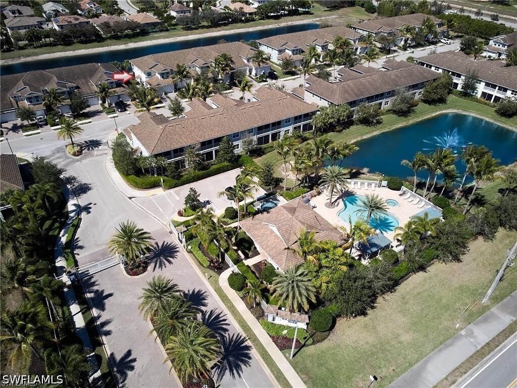 Experience the best of North Naples living in this pristine first-floor carriage home located in the gated community of Richmond Park. This light-filled,open-concept residence offers 2 bedrooms,2 bathrooms,and an attached garage,combining comfort,style,and convenience in one beautifully maintained home. The modern kitchen features a large island,spacious pantry,and flows seamlessly into the main living area,highlighted by custom built-in shelving and tasteful designer accents. Wood-look tile flooring runs throughout the main living spaces,complemented by updated lighting fixtures and contemporary ceiling fans. The primary suite serves as a private retreat,complete with a tray ceiling,oversized walk-in closet,and a spacious ensuite bath featuring a glass-enclosed shower. The guest bedroom and second full bath provide comfortable accommodations for family or visitors. Step outside to the private screened lanai and enjoy peaceful western lake views,enhanced by custom shades and a ceiling fan—perfect for relaxing year-round and enjoying Southwest Florida’s beautiful sunsets. Richmond Park is a well-maintained,gated community offering residents access to a clubhouse,resort-style pool,and sundeck,all surrounded by lush,landscaped grounds. Ideally located just minutes from Founders Square,offering a variety of dining,cafes,fitness studios,and entertainment options. Convenient access to top-rated schools,shopping,grocery stores,and a short drive to the white sand beaches of Vanderbilt Beach and Delnor-Wiggins Pass State Park. This move-in-ready home offers the perfect combination of location,lifestyle,and low-maintenance living in one of Naples’ most desirable areas. Available for annual rental. Offered furnished. Tenant responsible for electric.