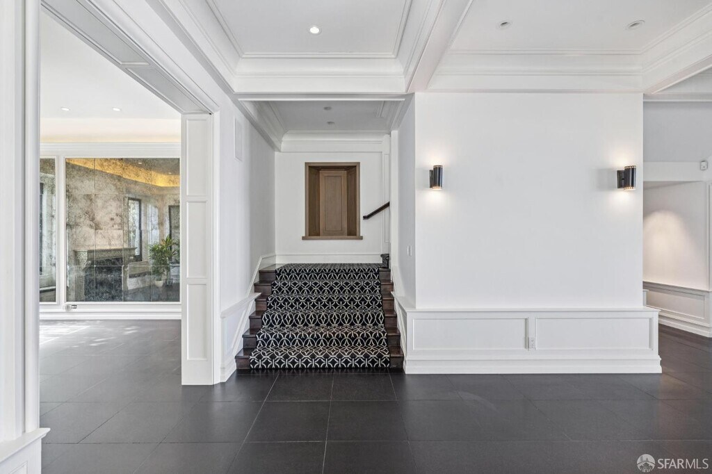 Rare opportunity to live in one of San Francisco's most beautiful mansions, boasting sweeping and direct views from Coit Tower to the Marin Headlands, of the Golden Gate Bridge, Palace of Fine Arts, Alcatraz, and the Bay. There are 6 bedrooms and and 6.5 baths with high ceilings throughout and decks on every level. A dramatic, grand foyer is enhanced by leaded glass windows and intricate details. At the front of the home is an expansive paneled formal living room, with a striking gas fireplace and south-facing oversized windows. At the back is a magnificent formal dining room with coffered ceiling, a family room or breakfast area with attached deck to admire the stunning views, and a chef's kitchen equipped with a central island, deluxe appliances, and fabulous views. On the upper level is a stunning primary suite with his and her'' baths (including dry sauna and steam shower), walk-in closet and dressing room, and a viewing deck, plus a sprawling den, library, or bedroom, furnished with handsome paneling, gas fireplace, ensuite bath, and walk-in closet. On the upper level are 4 bedrooms and 3 bathrooms, and at the top is a playroom or family room, skylit from above with a picture window and attached deck facing unparallelled outlooks. On the lower level is a separate yet integrated guest suite, with a family room, kitchenette, bedroom, bath, and large deck with a hot tub and stairs down to the garden. The level, turfed lawn is perfect for recreation. A 2-car-side by side garage completes the picture. State-of-the-art building systems and designer finishes throughout. Experience the pinnacle of luxury living in San Francisco. MLS # 426107493