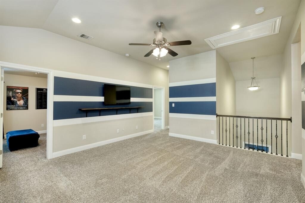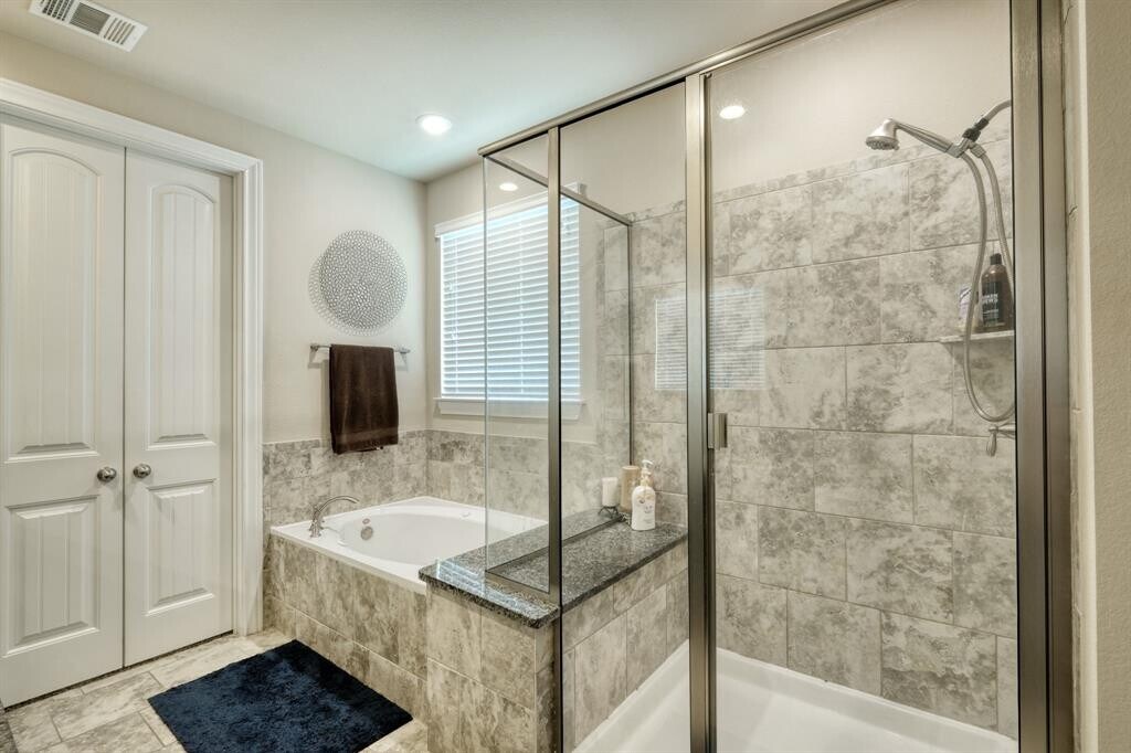 Beautifully Appointed Meritage Home with Thoughtful Design and Luxurious Features. Welcome to this stunning home built by Meritage Homes, where quality craftsmanship meets timeless design. Step through the grand entryway and into a dedicated home office at the front of the house—ideal for remote work or a quiet study space. That office space can also be converted to a 6th bedroom down and convert the downstairs 1/2 bath to full with access to that room. Continue into the heart of the home where you'll find a spacious formal dining room, perfect for hosting memorable dinner parties. The inviting open-concept great room showcases a dramatic wall of windows that fill the space with natural light and features a striking two-story stone fireplace that anchors the room with elegance. The gourmet kitchen is a chef’s dream—open to the great room and designed for entertaining. It includes an oversized granite center island with seating, stainless steel appliances, a walk-in pantry, and a cozy breakfast nook. The main-level primary suite is a serene retreat with high ceilings, a spa-inspired bath, and a huge walk-in closet that conveniently connects to the laundry room.Upstairs, you'll find four additional bedrooms and two full bathrooms, thoughtfully arranged around a spacious game room with an open balcony overlooking the great room—perfect for a pool table or media space.The neighborhood features mature trees, a community pool, and is ideally located near shopping, entertainment, and dining options.Welcome home!