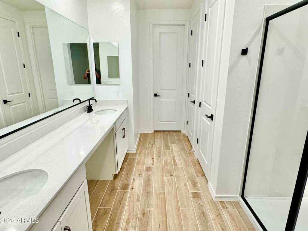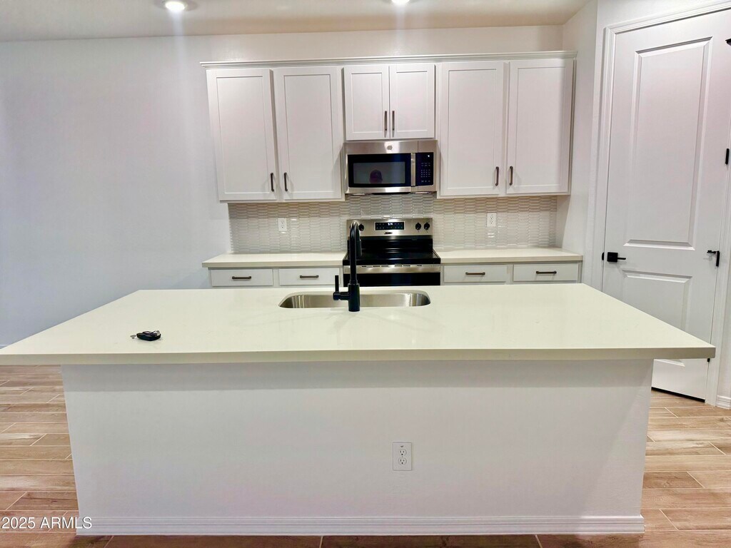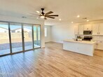 Come see this brand-new,never been lived in,1,949 sq. ft. home in the picturesque Wales Ranch community. This home offers 3 bedrooms,2.5 bathrooms,and a den/office area. This home has an incredible location in the neighborhood. It is on a corner lot,close to the park,and backs to a greenbelt and single story homes. The thoughtfully designed layout includes a cozy dining nook and an additional den,ideal for any homeowner. Featuring a beautiful light and airy design,the home showcases white cabinets,quartz countertops,and a beautiful backsplash,while wood-style ceramic tile floors create a seamless flow throughout. The view from the slider opens to a covered patio and a spacious private backyard,perfect for outdoor relaxation. The primary suite is a retreat with double sinks,an enlarged shower,an extra linen closet,a water closet,and a walk-in closet,streamlining your morning routine. A convenient half bath,located off the main hallway,offers privacy for guests. Additional highlights include 8-foot interior doors,blinds,washer,dryer,fridge,are all included. Residents of Wales Ranch can enjoy amenities such as pickleball,basketball,a beautiful lake,and scenic walking paths with breathtaking views. Come see this home today before it's too late.
