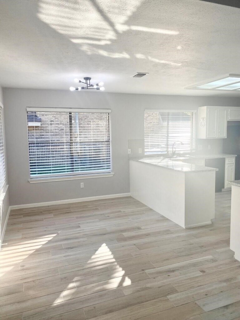 Gorgeous,updated one -story brick home in sought after Hunters Ridge Subdivision! Home features 4 spacious bedrooms and 2 baths,beautiful new ceramic flooring throughout,everything listed was updated in 2022! Beautiful granite counter tops in kitchen & bathrooms! Refrigerator included! White cabinets! Fairly New sinks! lighting,ceiling fans w/ light kit,fixtures! Interior neutral paint throughout! Awesome spacious family room w/wet bar,high ceilings & floor to ceiling brick fireplace w/ built ins! Great views to your nice backyard & patio area! Separate formals off entry way! Spacious Primary bedroom! Secondary bedrooms located @ back of house for added privacy! Both bathrooms recently updated! Front tall shady trees! Detached garage! Pretty curb appeal! Corner lot! Minutes from the acclaimed Bear Branch Elementary school & zoned to Middle & High schools! Ride your bikes to school over the beautiful Kingwood Trails! Close to shopping,& all local amenities! You will love it! MLS# 90350718