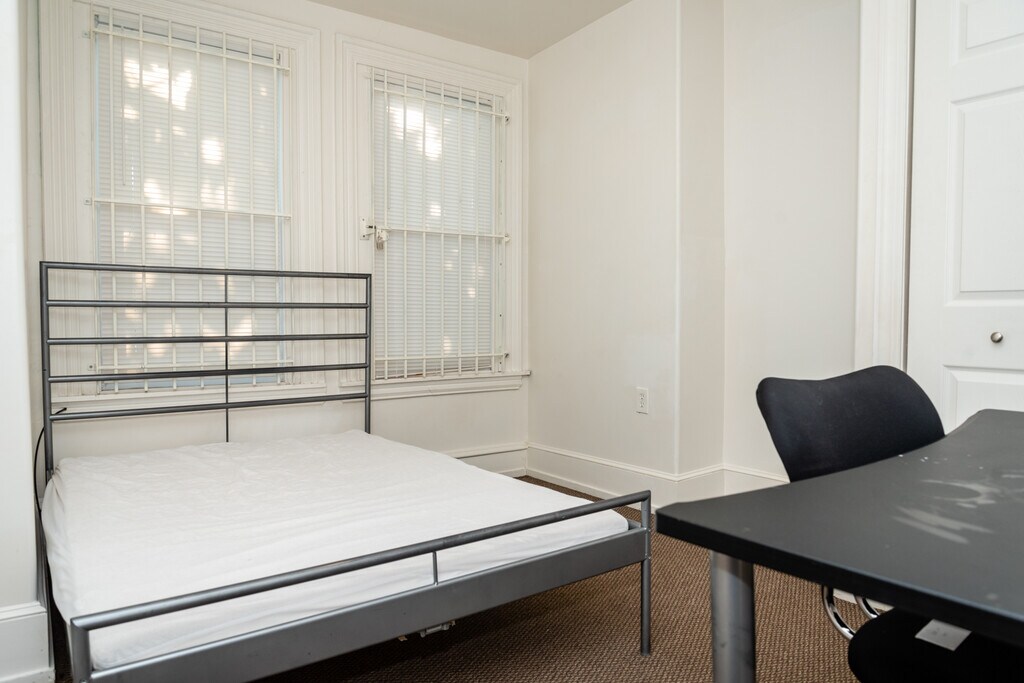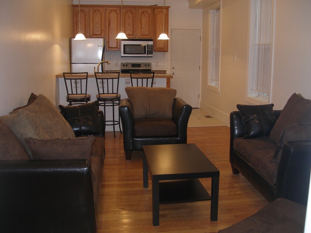 4 Bedroom, 2 bathroom furnished apartment, including washer/dryer This CLEAN, SECURE, FULLY FURNISHED 4-bedroom/2-bath house is conveniently located TWO BLOCKS from Temple campus. It has been completely REMODELED and has great features like an ADT security system and high efficiency central heat and air. The house even comes fully furnished. The first floor has an OPEN CONCEPT living room and kitchen with a BREAKFAST BAR and plenty of room for cooking and entertaining. The kitchen features STAINLESS steel appliances, built-in microwave, GRANITE counters, and tile floor. There is access to a laundry room with WASHER and DRYER and an enclosed back PATIO off of the kitchen as well. The house also has a BASEMENT. The four bedrooms are LARGE with great CLOSET SPACE. They each come furnished with bed, desk, and desk chair. There are two pristine full bathrooms with LOVELY tile, glass shower doors, and tile floors.