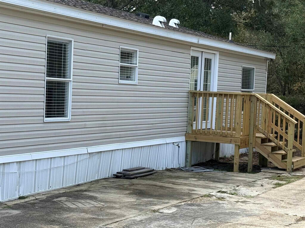 Just remodeled multi section manufactured home. All new paint,appliances,steps,flooring,a/c,all new blinds along with a new storage house. Home is all electric with washer and dryer hookups. Luxury vinyl plank throughout the house. Residents have access to a community pool,dock,boat ramp,storage area for boats and large vehicles. Conveniently located near the back gate of NAS,Naval Hospital,PSC,Perdido Key,downtown Pensacola and the beaches.