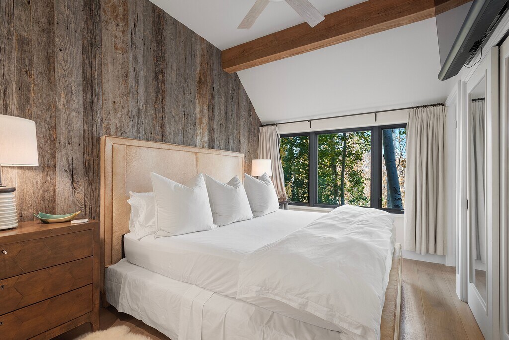 This exceptional mountain retreat seamlessly blends contemporary luxury with the natural beauty of Snowmass. With a total remodel down to the studs in 2015, the interior includes soaring ceilings, expansive floor-to-ceiling windows, and a cozy wood-burning fireplace that anchors the living room, filling the space with natural light and warmth. The open-plan design flows effortlessly into the dining area, providing the perfect setting for gatherings, while the gourmet kitchen is equipped with top-tier appliances and finishes. With five well-appointed bedrooms, each featuring king beds and en suite bathrooms, every guest can enjoy their own private retreat. The home offers ample storage for gear with a spacious mudroom and a two-car garage. The property includes a dedicated bonus room for relaxation and entertainment, as well as an outdoor hot tub and wood burning fireplace on the deck to enjoy the breathtaking mountain surroundings.