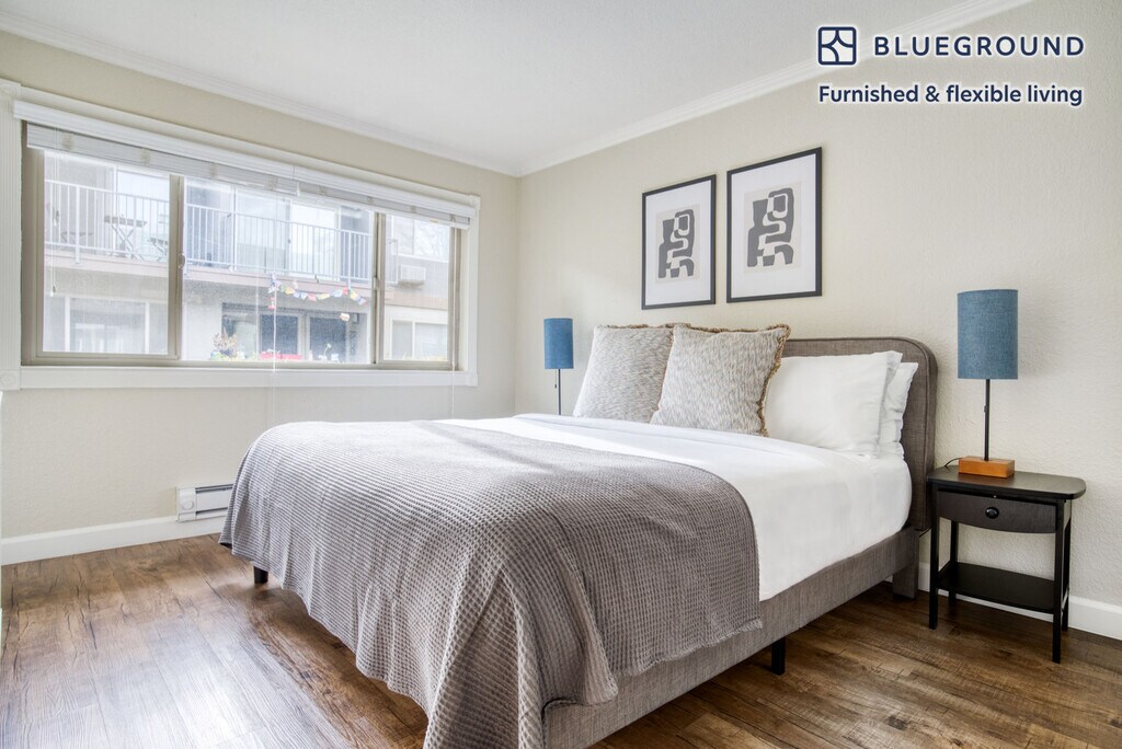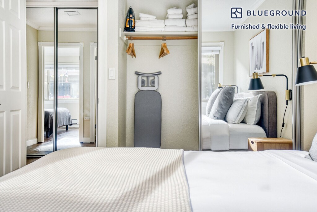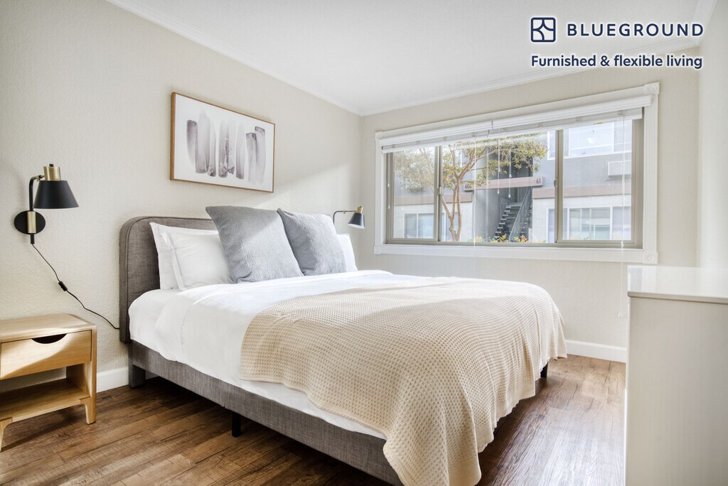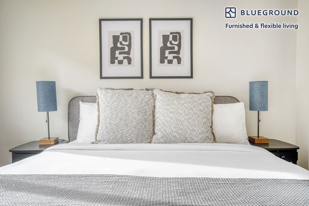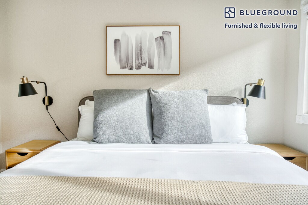 Discover the best of Mountain View, with this two bedroom apartment in Shoreline West. It’ll be easy to simply show up and start living in this furnished apartment with its fully equipped kitchen, living room, and our dedicated, on-the-ground support. (ID #SFO678) The advertised rate of $4,392/month is the lowest available price, based on a 12 month(s) stay with a move-in date of March 2, 2026. Rates vary depending on the duration of stay, season, and other parameters. For exact pricing and additional pricing components, please visit our website and enter your desired move-in and move-out dates. The rate is applicable when billed upfront; it can be higher if billed in multiple payments. Brokers are welcome to reach out. Were you looking for an unfurnished lease? Try Blueground instead and upgrade from unfurnished to furnished living: - Furnished at rates comparable to unfurnished - No setup or furniture costs - save thousands - Move-in ready - save time, just bring your suitcase Designed with you in mind Thoughtfully designed with bespoke finishes, modern furnishings, and a fully equipped kitchen, you’ll enjoy that “I’m home” feeling with this Blueground apartment. Whether you’re lounging in your beautiful living room streaming the latest and greatest entertainment on the smart TV or premium wireless speaker, or getting some well-earned rest on the superior quality mattress with fully stocked linens, you’ll fall in love with everything this Shoreline West apartment has to offer. This apartment also offers in-apartment laundry. Sleeping arrangements King Bed, 70.8in/180cm King Bed, 70.8in/180cm Amenities Building amenities unique to this two bedroom apartment include an on-site: - BBQ Area - Dryer - Swimming pool - Washing machine - Parking - Pets allowed Arrival and ongoing support The entire apartment is yours to enjoy! Throughout your stay, you’ll have access to our Client Experience team through the Blueground App. You can schedule additional cleanings, submit maintenance requests, and view our neighborhood recommendations with just a few taps. We’ll share all details upon confirmation of your stay. Other things to note Building amenities may have an extra cost. This Blueground apartment has flexible lease options, allowing you to book it for one month, a year, or more. Pets are welcome, though weight limits and breed restrictions apply and may incur fees. Parking is offered based on availability and is subject to a fee. Please keep in mind that this is a walk up building. We take great pride in ensuring every photo displayed is shot in our own units with our actual furnishings. That said, we regularly refresh our decor and furniture arrangement, which may differ from what’s pictured. [SI]