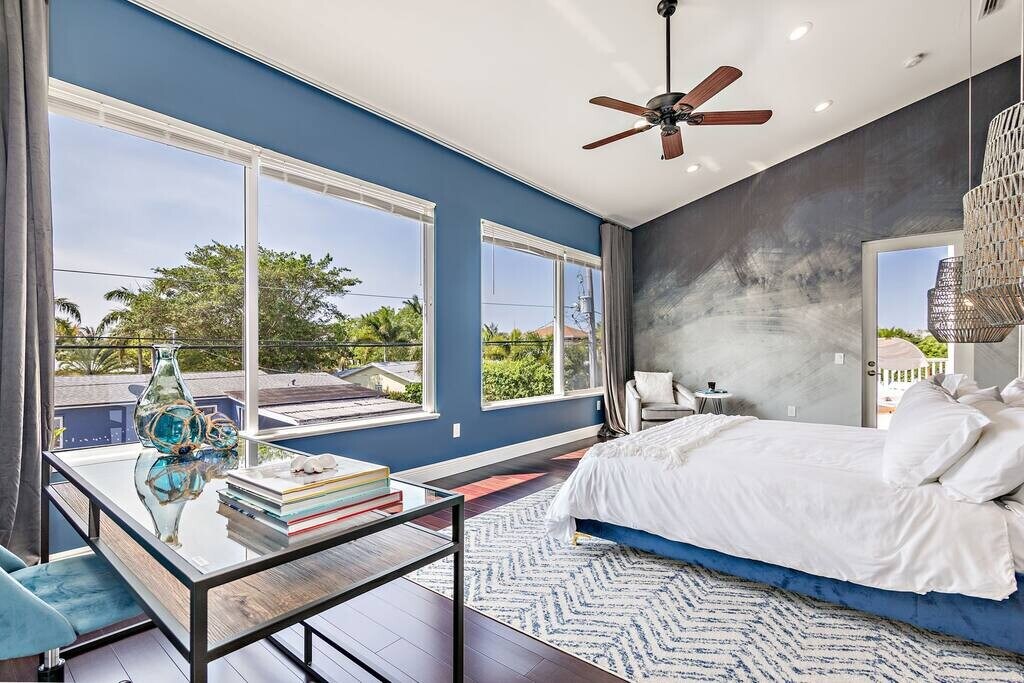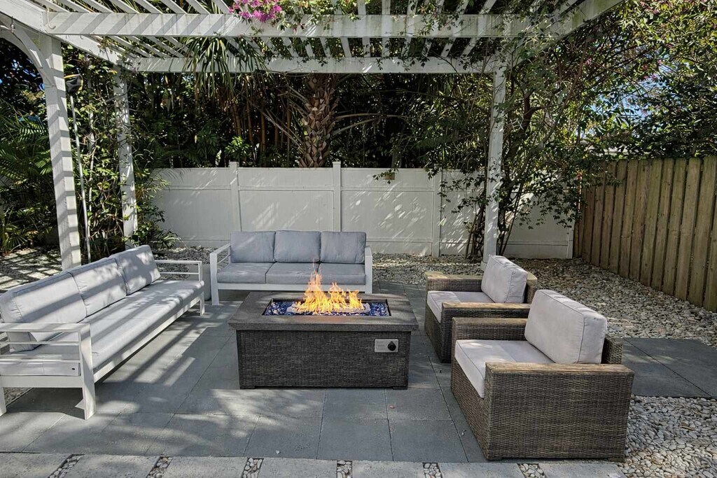 ? Walk to the Intracoastal ? Private Heated Pool ? Spacious Luxury Villa ? Concierge ? Pet Friendly ? Multi-Suite Home Welcome to The LUX, your private tropical retreat in SOSO West Palm Beach. This expansive 5-bedroom, 4-bathroom villa offers multiple living spaces, luxe amenities, and breezy indoor/outdoor living — perfect for families, friend groups, coworking escapes, and long, relaxing Florida stays. Nestled just a short walk from the Intracoastal beach and minutes from Palm Beach Island, this designer villa brings comfort, sophistication, and the signature hospitality Hotel Home Stays is known for. The space THIS HOME IS PERFECT FOR . . . ? Groups & Families – 5 bedrooms, 2 master suites, multiple lounges ? Work + Play Stays – office space & fast WiFi ? Poolside Vacations – private heated pool, outdoor dining & pergola ? Long Stays – fully stocked kitchen + everyday essentials ? Luxury Escapes – concierge services from chefs to massage ?????????????????????? ¦**TROPICAL INDOOR / OUTDOOR LIVING** ? Private heated pool (Oct–Apr, optional heating $125/night) ? Outdoor living room + fireplace ? Pergola with dining for 6 ? BBQ grill ? Upstairs balcony with lounge chairs and sunset views ? Two stylish indoor living rooms with 55” Smart TVs ? Fully stocked kitchen + breakfast bar (seats 3) ? Dining room for 8 ? Private office space ? High-speed WiFi ? Games: chess, Jenga and more ? Organic soaps, premium toiletries, hair dryers ? Laundry detergent & supplies ? Hypoallergenic bedding + mattress encasements AMENITIES INCLUDED ? Starbucks drip coffee & Nespresso ? Tea, sugar, creamer, cooking basics ? Mixology bar setup ? Plush robes & slippers ? Board games ? Fast, reliable WiFi ? Fully equipped kitchen essentials ? Kid items available on request ?????????????????????? ¦BEDROOMS – 5 BEDROOMS / 4 BATHROOMS 1st Floor ? Guest Bedroom 1 – Queen bed ? Guest Bedroom 2 – Queen bed ? Guest Bedroom 3 – Full bed ? Two full bathrooms 2nd Floor ? Master Suite 1 – King bed, glass surround shower, soaking tub, walk-in closet, private balcony, office space ? Master Suite 2 – King bed, soaking tub, 32” Smart TV LAYOUT ? Sleeps 10 ? Crib & air mattress available upon request ? Two living rooms, multiple lounge areas ?????????????????????? ¦BATHROOMS ? Four full bathrooms ? Modern finishes & glass showers ? Soaking tubs in both master suites ? Plush towels + premium toiletries ??????????????????????
