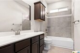This 3 bedroom, 2 bathroom townhome offers a functional layout with defined spaces and comfortable living throughout. The home opens into an entry area that leads into the main living spaces, creating a natural transition into the open kitchen and living area. The kitchen features granite countertops, tile backsplash, and stainless steel appliances including refrigerator, built-in microwave, flat top stove/oven combo, and dishwasher. The main living area is positioned toward the back of the home, giving the space a more relaxed feel. The home includes a mix of luxury vinyl plank and carpet, with durable flooring in the main areas and carpet in the bedrooms for comfort. All bedrooms are nicely sized with good closet space. The primary bedroom includes its own full bathroom, and both bathrooms offer additional storage. Additional features include: Washer/dryer connections Attached garage Fenced yard Ceiling fans Central heating and air Schools: - Taylor Creek Elementary; Lampasas Middle School; Lampasas High School Important Note: Photos shown are from a similar unit with the same floor plan. The available unit is a reverse layout, so orientation and finishes may vary slightly.