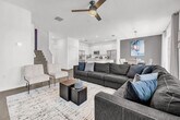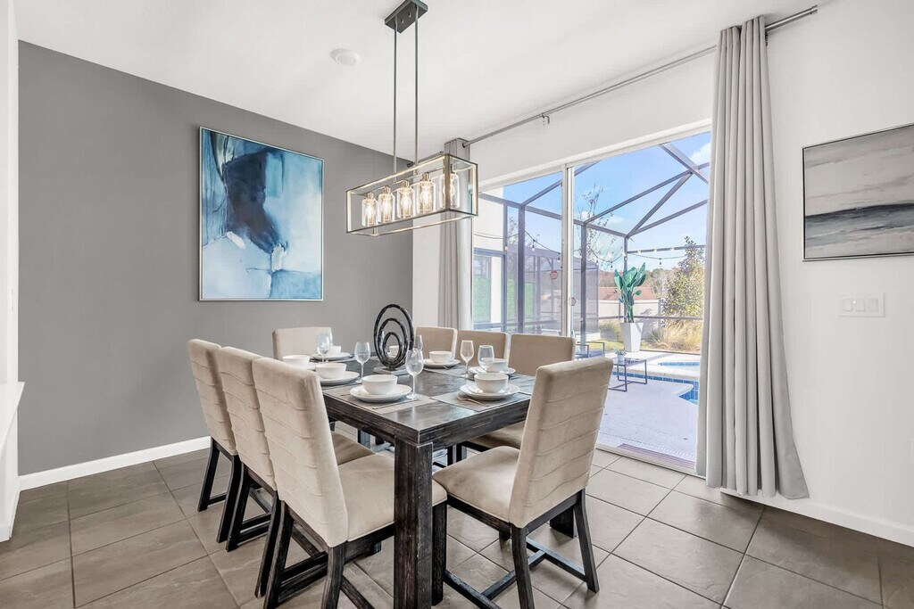 Feel at home in this vibrant, family-friendly home at the BellaVida Resort, with 8 bedrooms and space for up to 20 guests. Themed bedrooms will delight kids, and the garden-facing back patio features a swimming pool, hot tub, and BBQ grill. This villa offers endless indoor entertainment, including an Avatar-themed garage games room with foosball, ping pong, billiards, and a big-screen TV, as well as an upstairs movie loft with a giant projection screen and plush seating. The fully equipped kitchen features high-end appliances, stocked cabinets, two full-size fridges, and two dishwashers. There is a large dining table for 8 and kitchen island seating for 4. All 8 bedrooms feature smart TVs, comfy beds, fluffy towels, and fresh linens. Onsite parking is available for up to 4 vehicles. Pool and hot tub heating is available for an additional fee of $35/night per service or $60/night for both, with a minimum stay of 2 nights. A Pack 'N Play Crib and a highchair are available for one-time fees of $40 each. Your BBQ comes with a complimentary full propane tank at check-in, and a one-time refill is available for $55. Located at the Bella Vida Resort, just 5 miles from Walt Disney World off US192 in Kissimmee, this home is a short drive away from theme parks, water parks, golf courses, restaurants, and shopping. Guests enjoy access to the resort facilities, including a large community pool and sundeck, sports courts, a clubhouse, and over 15 acres of lakes. Parties, events, and smoking/vaping of any kind are prohibited in or around the property and risk a fine of $150. Late departures will result in a fine of $150 for each additional hour the property cannot be accessed. Outside of service animals, pets are not permitted at this property, and any evidence of pets will result in a fine. Firearms and weapons are strictly prohibited in this home. [SI]