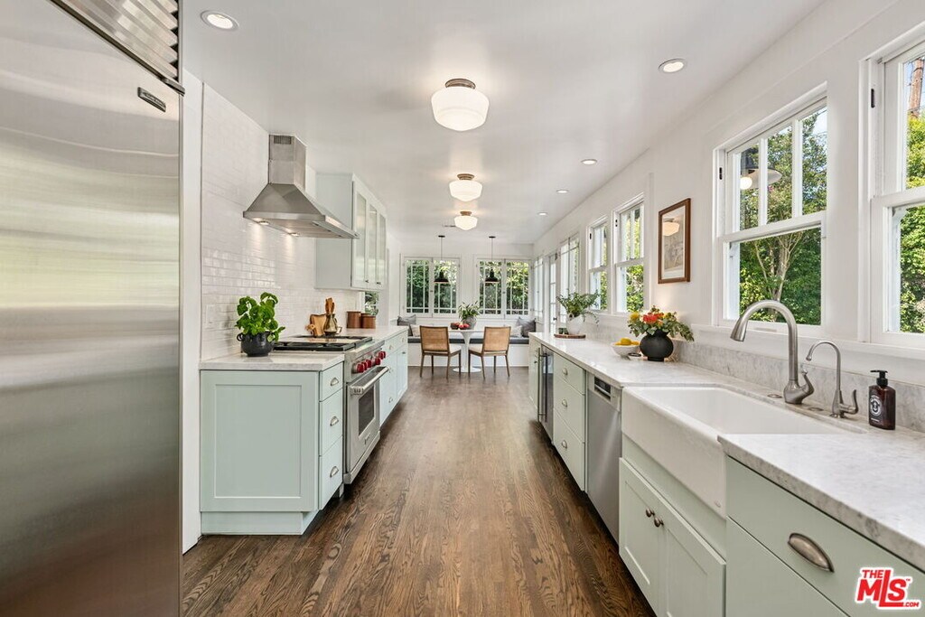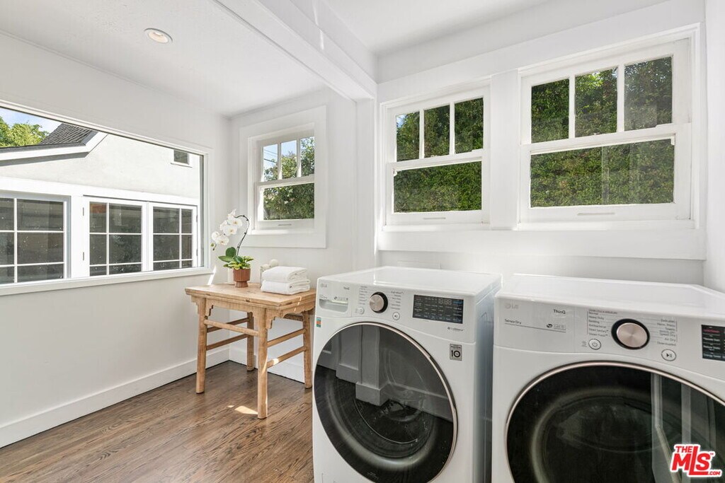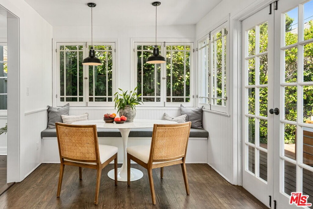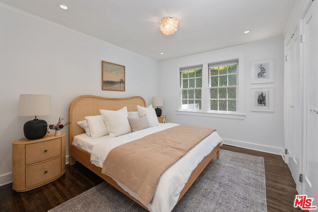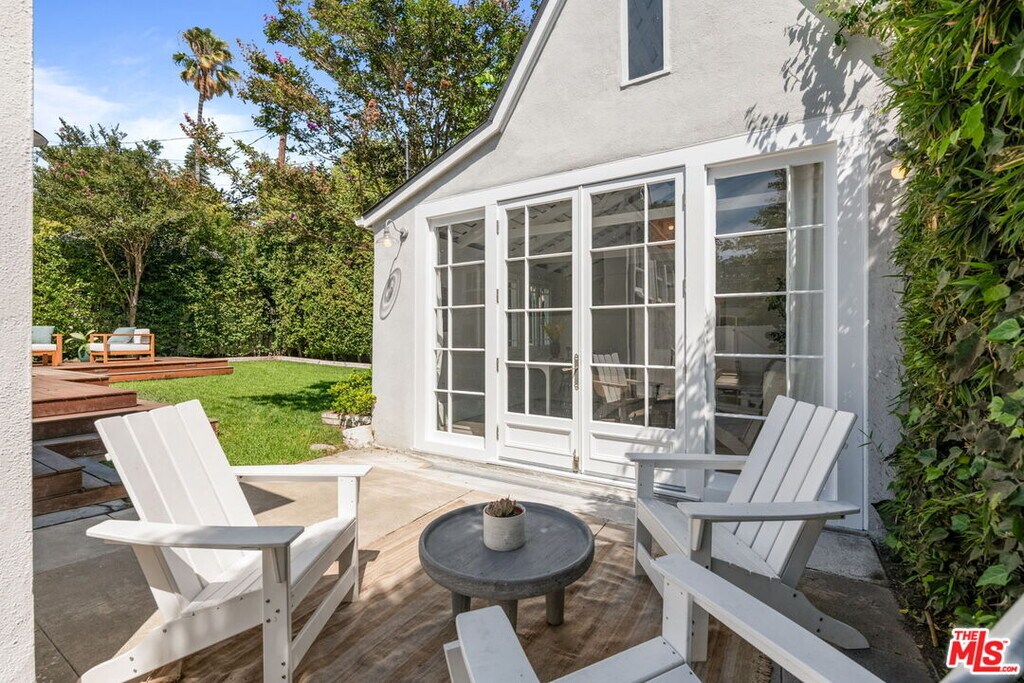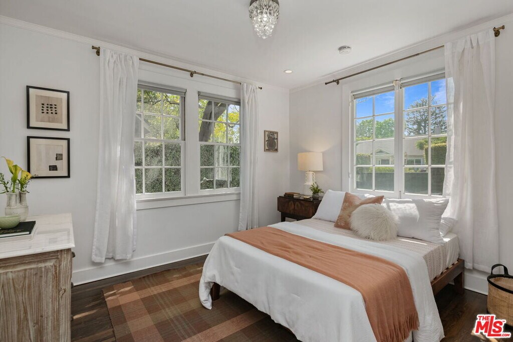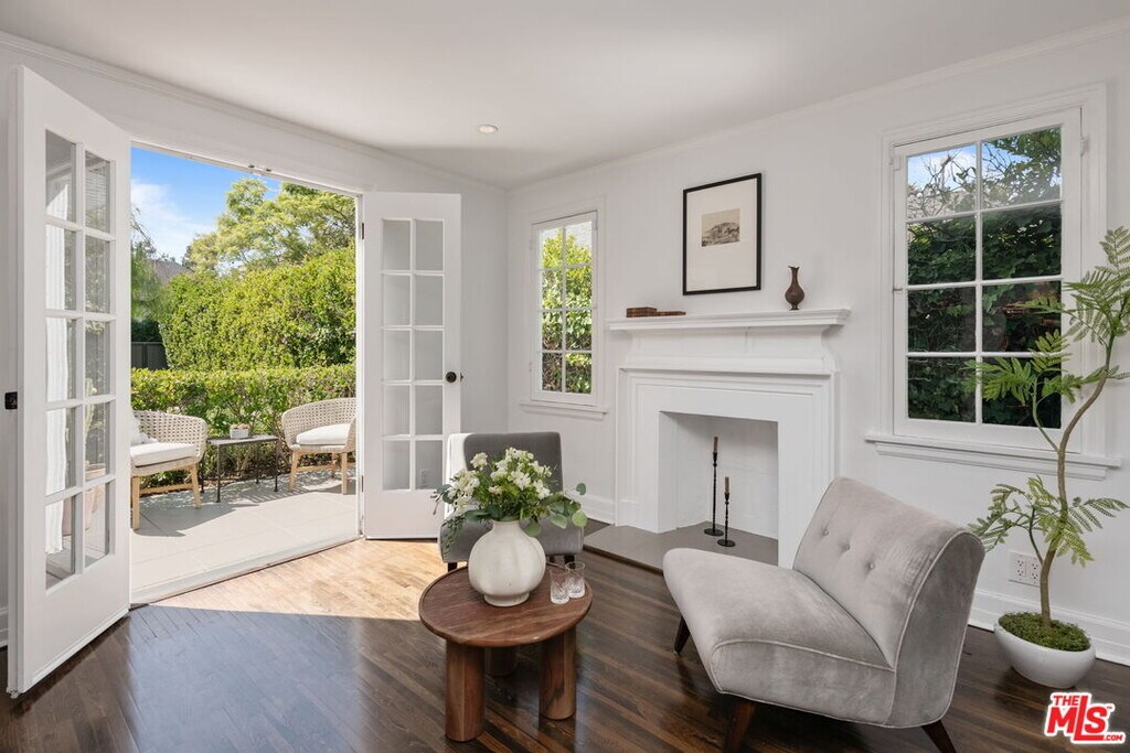 The Edwin L. Stanton Residence by Stanton, Reed & Hibbard (Hotel Figueroa DTLA). Located on a quiet, tree-lined street in the Windsor Square area () of Hancock Park, this gated English Cottage is steeped in charm. The home is nicely framed by a landscaped front garden and is surrounded by tall hedges offering privacy from the street.Abundant light throughout the house is one of its most endearing features. A formal living room with hardwood floors, a decorative fireplace, and French doors that open to a front patio with rose garden views add to its easy flow. A den is located just off the living room, providing additional space for daily living or entertaining. This could easily be enclosed to form 3rd bedroom or office. Bathed in natural light, the kitchen includes a classic built in breakfast nook, Sub-Zero and Wolf stainless steel appliances, ample cabinetry, and a conveniently adjacent laundry room. The hedged backyard is private and landscaped, with a large sun deck suited for relaxing or outdoor dining. A detached air conditioned flex space is entered thru French doors has been used as an office, gym, or studio.Experience some of L.A.'s best architecture as you make your way thru this idyllic neighborhood to Larchmont Village, a picture perfect street lined with local restaurants and shops. And, don't forgot about the local farmer's market on Wednesdays and Sundays. This home presents a great opportunity to live in a well-established neighborhood with classic architectural character. Square footage of the home is 1,472 and the bonus space is 288. MLS# 25616827