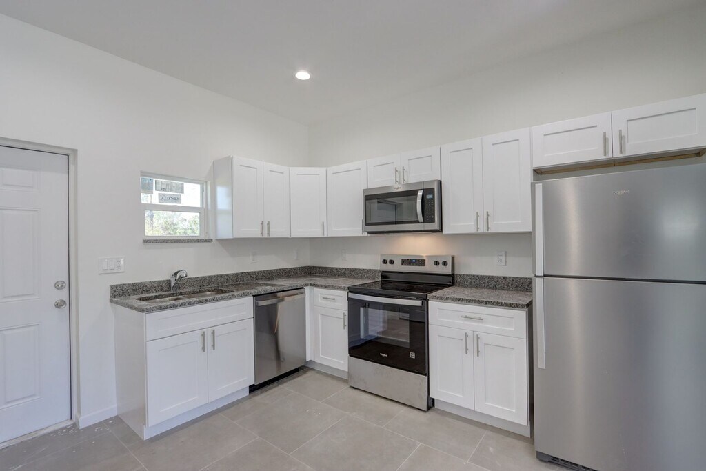 Welcome to a Brand New 2/2/1 in South Lehigh Acres. This is a stunning new home nestled in the heart of Lehigh Acres, FL. This home boasts two spacious bedrooms providing ample space for comfort and privacy. The primary bedroom features an en-suite with a large tiled shower, perfect for unwinding after a long day. The eat in kitchen is a chef's dream, complete with stainless steel appliances, granite counters, wood shaker cabinets, and a pantry providing plenty of storage space. Enjoy meals in the eat-in kitchen or step out to the covered rear lanai for alfresco dining in a serene setting. The home also includes a one-car attached garage with washer and dryer hookups, offering convenience and additional storage. Pets are welcome in this home, making it perfect for those with furry friends. With its close proximity to SR 82, this home is in a great location for commuting or exploring the local area. Be the first to call this brand new home yours. Don't miss out on renting one of the lowest priced rentals in Lehigh Acres. Schedule a viewing today!