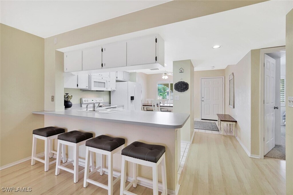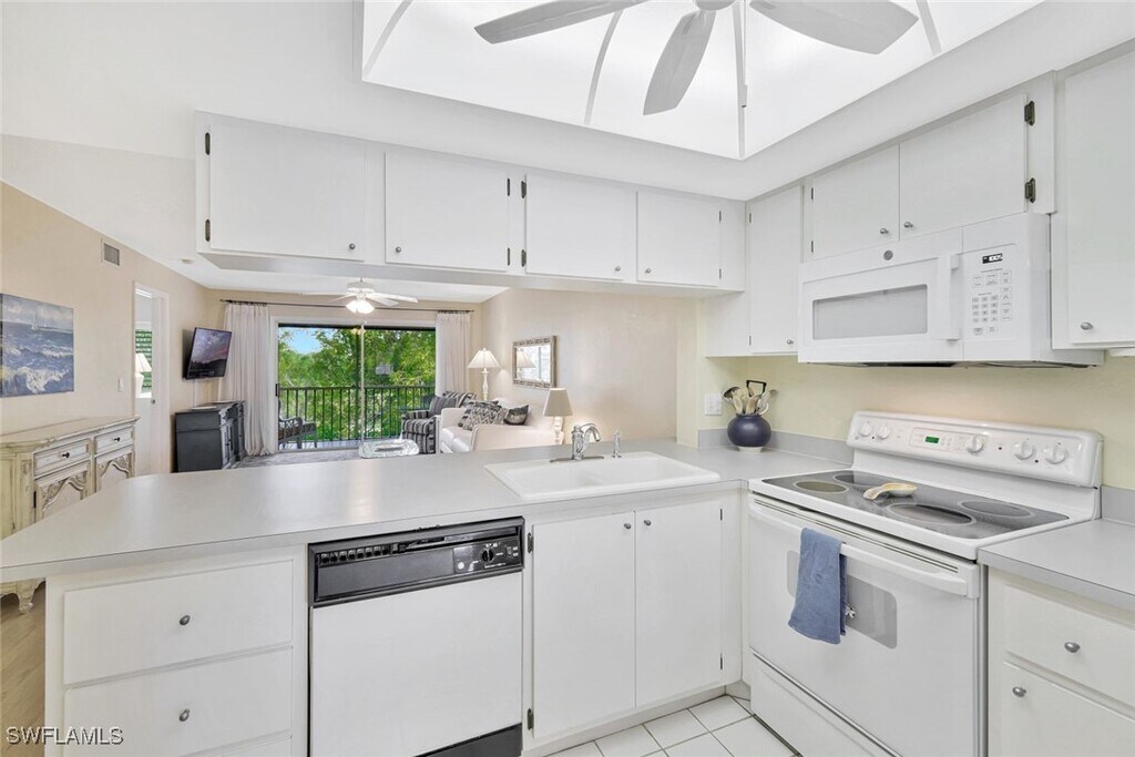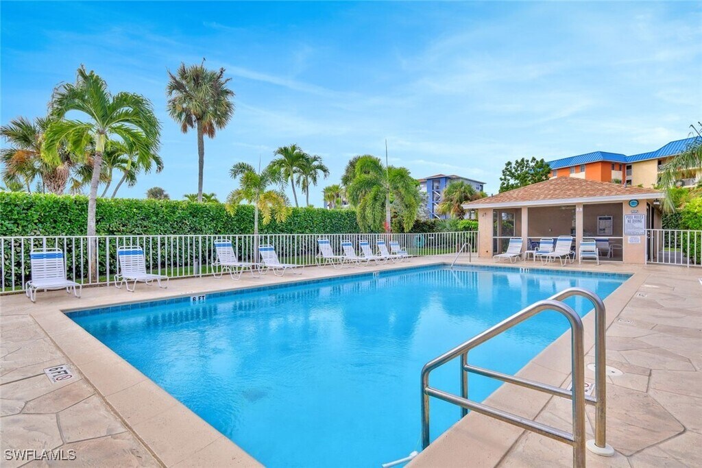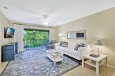 Brigt and beautiful 2nd floor condo is in move-in ready condition is turnkey furnished ! 2 bedroom,2 bath unit with a private tropical setting overlooking Hibiscus Golf Club. The open concept layout boasts a breakfast bar,dining area,and spacious kitchen. The primary suite is equipped with a double-sink vanity,tiled shower,and a spacious walk-in closet. The guest bedroom and bathroom are situated away from the primary suite offering privacy for all. Additional features include a covered carport and plantation shutters. Naples Green is the ideal location with quick access to 5th Avenue,Celebration Park,world-class beaches,and so much more!