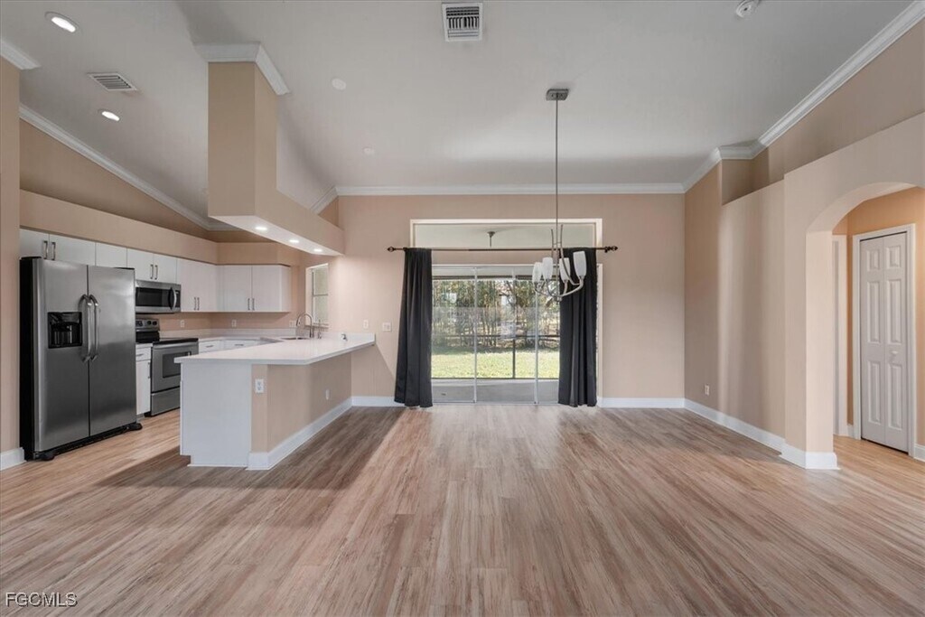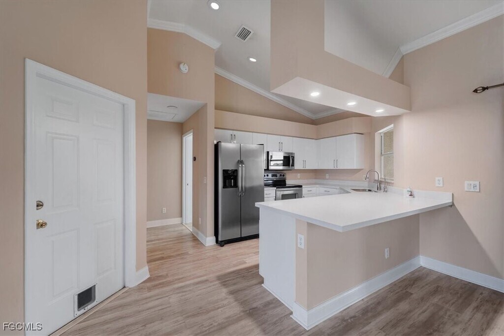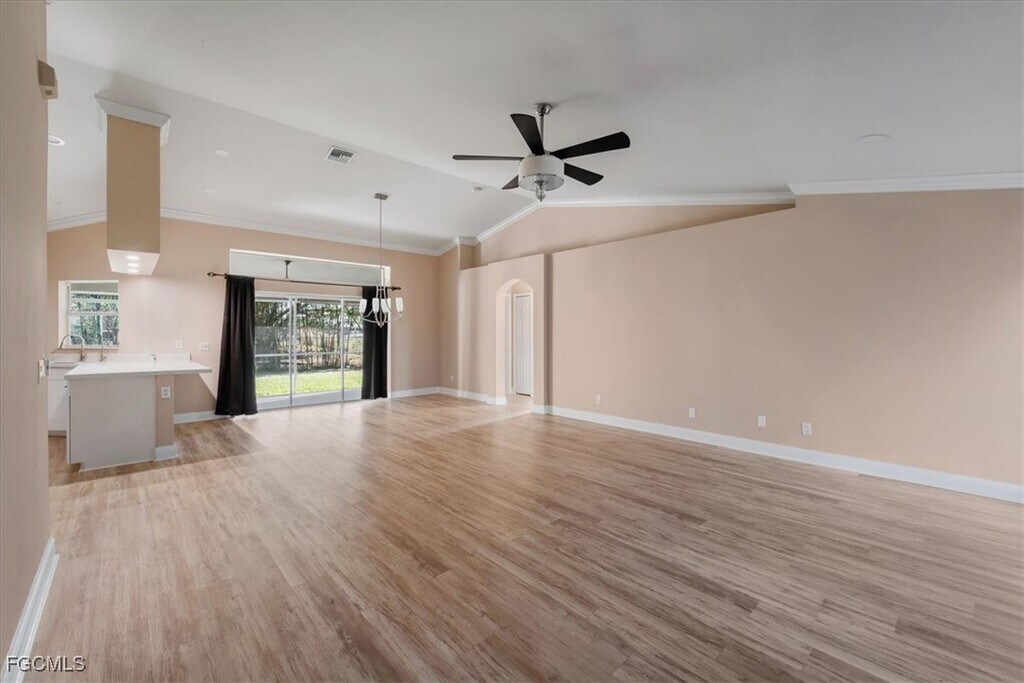 move-in ready condition! Situated on a .25-acre lot with mature landscaping,this recently renovated home boasts 3 full bedrooms,2 bathrooms and a 2-car garage. As you step inside,you’ll be greeted by an open concept living area with plenty of natural light that creates a warm and inviting atmosphere. The spacious kitchen is equipped with modern appliances,ample cabinet space,and a convenient breakfast bar,The primary bedroom features a walk-in closet and an en-suite bathroom,covered lanai is screened-in and accessible from the living room. The large backyard offers plenty of space for gardening,outdoor activities,or even adding a pool. Located in the heart of Lehigh Acres,this home is close to shopping,dining,schools,and parks. With easy access to major highways,you’re just a short drive from all that Southwest Florida