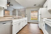 Charming 2 bedroom, 2 bath duplex in Euless just minutes from American Airlines headquarters and convenient to DFW airport, shopping and dining. Thoughtful split floorplan offers privacy between bedrooms. Freshly painted interior with upgraded windows for energy efficiency and natural light. Updated baths and modern updated kitchen design. Open living area flows to the kitchen. Small, fenced backyard with storage shed provides a low-maintenance outdoor space. Includes 2 covered parking spots.