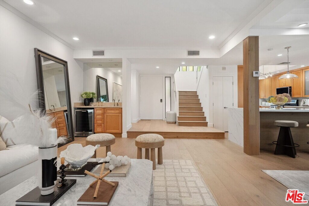 Tucked behind private gates in one of Beverly Hills' most coveted locations, this newly remodeled contemporary three-story townhome is a stunning showcase of modern luxury and design. Meticulously crafted, the residence boasts four spacious bedrooms, each adorned with sleek, high-end finishes that blend comfort with sophistication.The open-concept main level is a masterclass in style, featuring wide-plank light oak wood floors, a striking stone fireplace, and a custom wet bar perfect for effortless entertaining. The gourmet kitchen is a true centerpiece, highlighted by a waterfall quartz island, designer cabinetry, and premium appliances, seamlessly marrying form and function.Upstairs, the grand primary suite is a tranquil retreat flooded with natural light. It offers a large walk-in closet and a spa-inspired bathroom complete with a Jacuzzi tub, double vanity, and an oversized shower your own private wellness escape. Additional highlights include access to a resort-style community pool and spa, and a secure, ground-level community garage with three reserved parking spaces and direct unit access providing ultimate convenience and privacy. Ideally located just moments from world-class dining, luxury shopping, charming cafes, tennis courts, and the beautifully landscaped La Cienega Park, this exceptional residence offers the very best of upscale urban living in Beverly Hills. MLS# 25618435